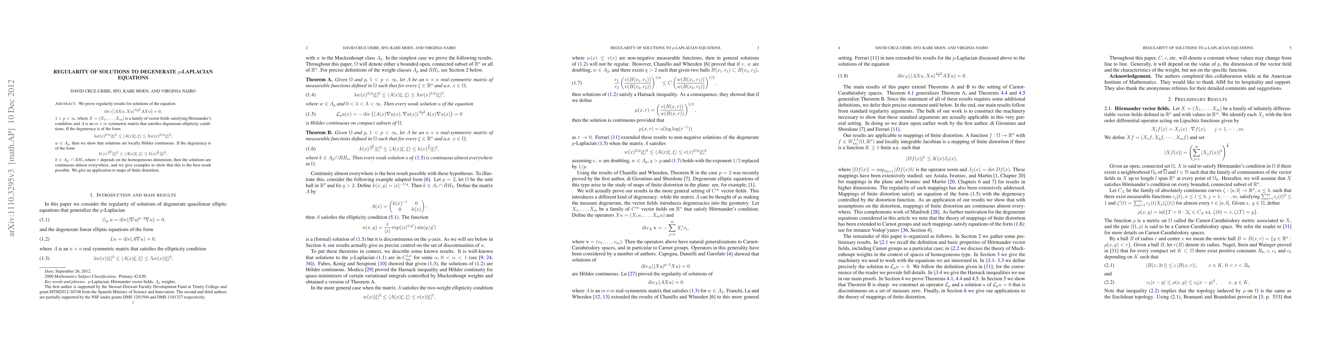 \leq \Lambda w(x)^{2/p}|\xi|^2,\] $w \in A_p$, then we show that solutions are locally H\"older continuous. If the degeneracy is of the form \[ k(x)^{-2/p'}|\xi|^2\leq < A(x)\xi,\xi>\leq k(x)^{2/p}|\xi|^2, \] $k\in A_{p'}\cap RH_\tau$,where $\tau$ depends on the homogeneous dimension, then the solutions are continuous almost everywhere, and we give examples to show that this is the best result possible. We give an application to maps of finite distortion.