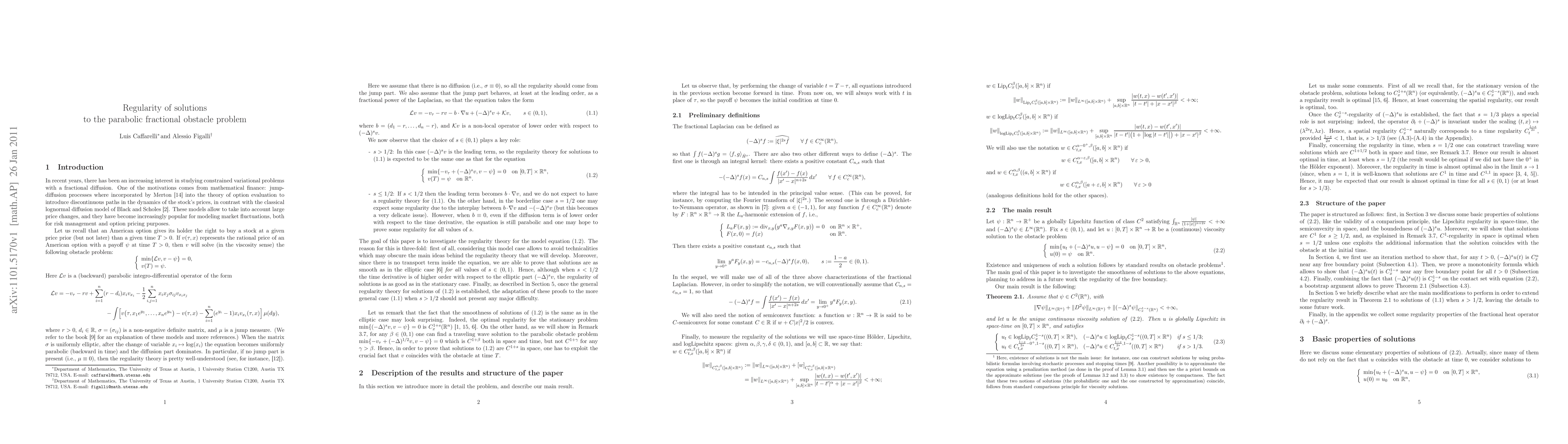 This paper investigates the regularity of solutions to a parabolic fractional obstacle problem, establishing near-optimal regularity results. The problem is inspired by Menton's American option model, which incorporates discontinuous paths in stock price dynamics.