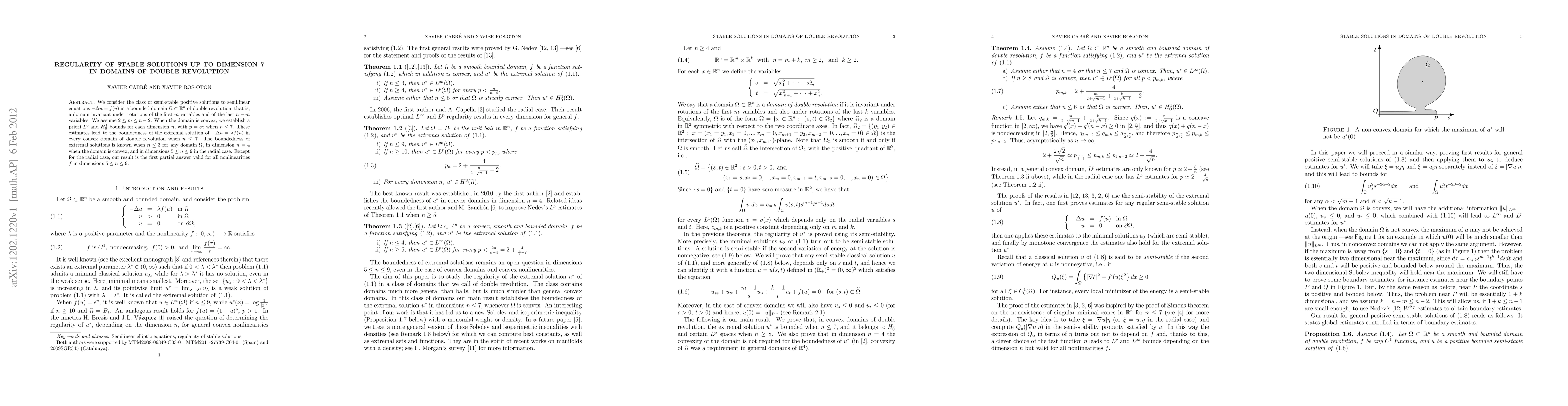 We consider the class of semi-stable positive solutions to semilinear equations $-\Delta u=f(u)$ in a bounded domain $\Omega\subset\mathbb R^n$ of double revolution, that is, a domain invariant under rotations of the first $m$ variables and of the last $n-m$ variables. We assume $2\leq m\leq n-2$. When the domain is convex, we establish a priori $L^p$ and $H^1_0$ bounds for each dimension $n$, with $p=\infty$ when $n\leq7$. These estimates lead to the boundedness of the extremal solution of $-\Delta u=\lambda f(u)$ in every convex domain of double revolution when $n\leq7$. The boundedness of extremal solutions is known when $n\leq3$ for any domain $\Omega$, in dimension $n=4$ when the domain is convex, and in dimensions $5\leq n\leq9$ in the radial case. Except for the radial case, our result is the first partial answer valid for all nonlinearities $f$ in dimensions $5\leq n\leq 9$.