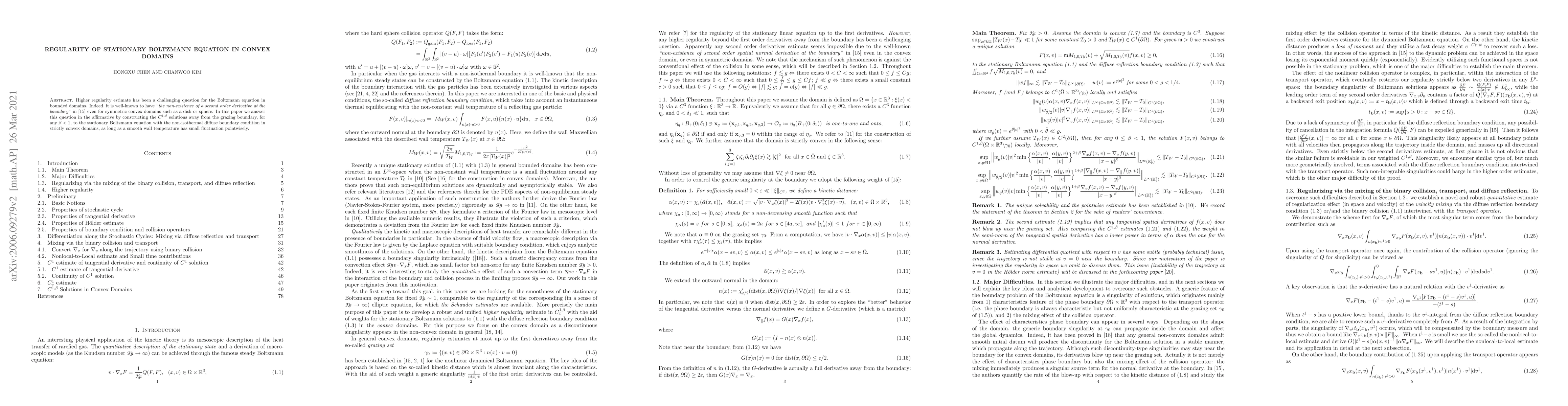 Higher regularity estimate has been a challenging question for the Boltzmann equation in bounded domains. Indeed, it is well-known to have "the non-existence of a second order derivative at the boundary" in [15] even for symmetric convex domains such as a disk or sphere. In this paper we answer this question in the affirmative by constructing the $C^{1,\beta}$ solutions away from the grazing boundary, for any $\beta<1$, to the stationary Boltzmann equation with the non-isothermal diffuse boundary condition in strictly convex domains, as long as a smooth wall temperature has small fluctuation pointwisely.