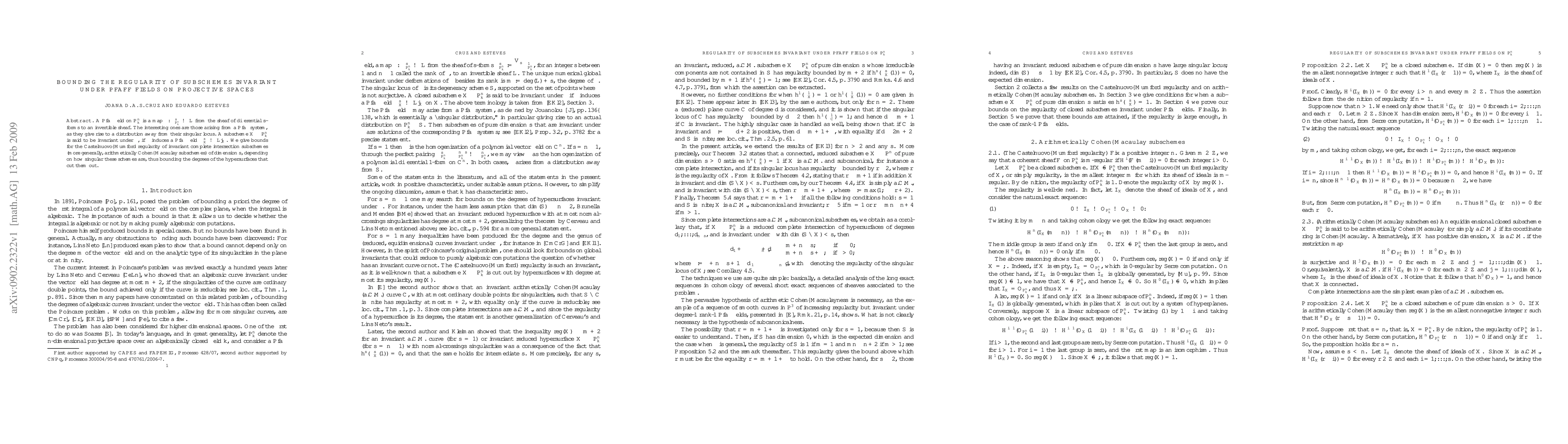 A Pfaff field on a projective space is a map from the sheaf of differential s-forms, for a certain s, to an invertible sheaf. The interesting ones are those arising from a Pfaff system, as they give rise to a distribution away from their singular locus. A subscheme of the projective space is said to be invariant under the Pfaff field, if the latter induces a Pfaff field on the subscheme. We give bounds for the Castelnuovo-Mumford regularity of invariant complete intersection subschemes (more generally, arithmetically Cohen-Macaulay subschemes) of dimension s, depending on how singular these schemes are, thus bounding the degrees of the hypersurfaces that cut them out.