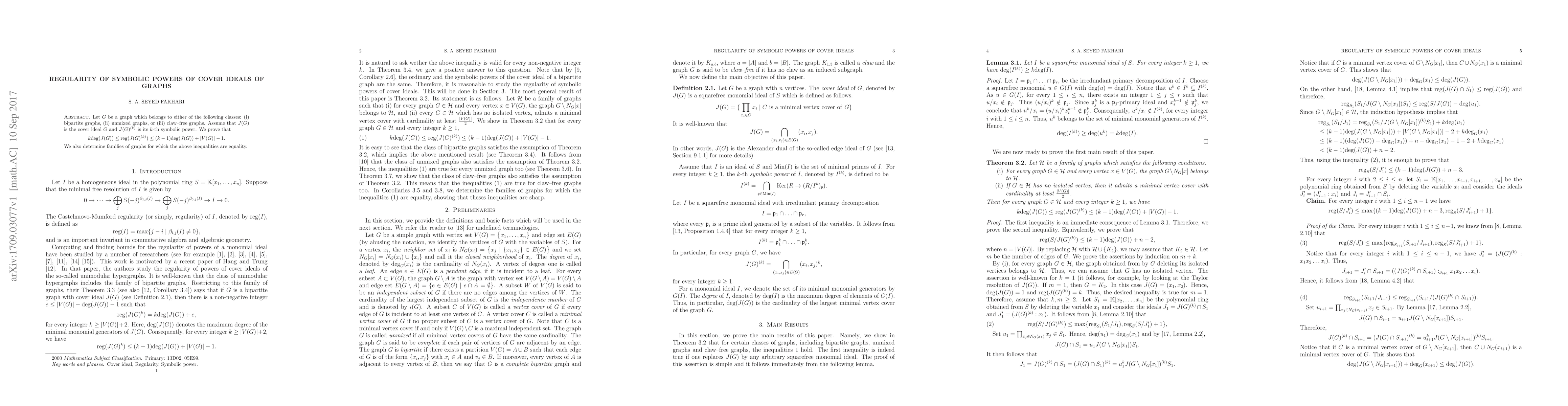 Let $G$ be a graph which belongs to either of the following classes: (i) bipartite graphs, (ii) unmixed graphs, or (iii) claw--free graphs. Assume that $J(G)$ is the cover ideal $G$ and $J(G)^{(k)}$ is its $k$-th symbolic power. We prove that$$k{\rm deg}(J(G))\leq {\rm reg}(J(G)^{(k)})\leq (k-1){\rm deg}(J(G))+|V(G)|-1.$$We also determine families of graphs for which the above inequalities are equality.