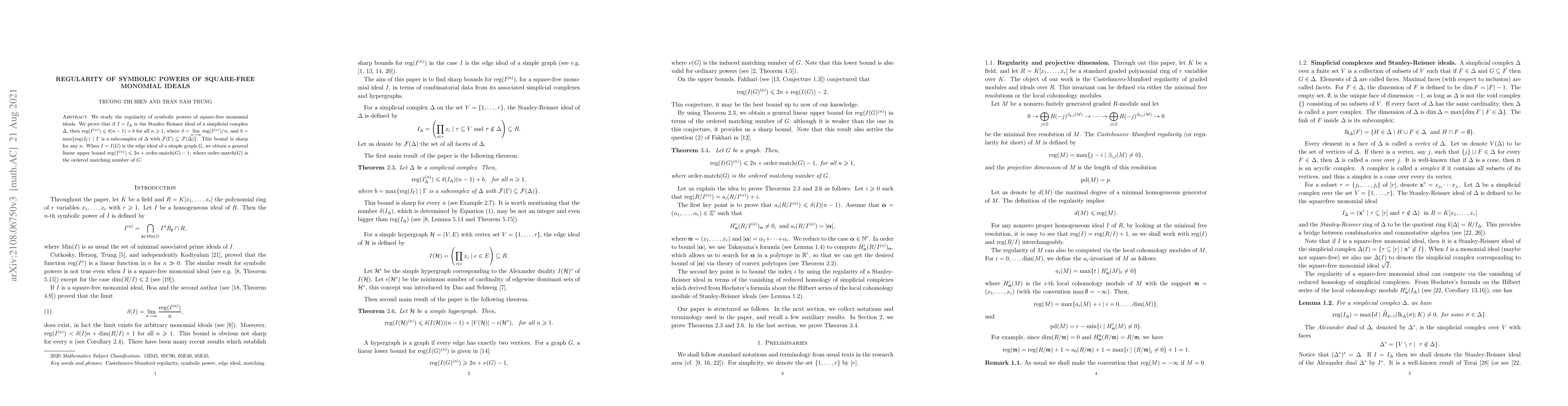 This paper investigates the regularity of symbolic powers of square-free monomial ideals, proving a linear upper bound for their regularity in terms of the simplicial complex or graph structure. Specifically, it establishes $\reg(I^{(n)}) \leqslant \delta(n-1) + b$ for Stanley-Reisner ideals and $\reg(I^{(n)}) \leqslant 2n + \ordmatch(G)-1$ for edge ideals, with sharp bounds for all $n$.