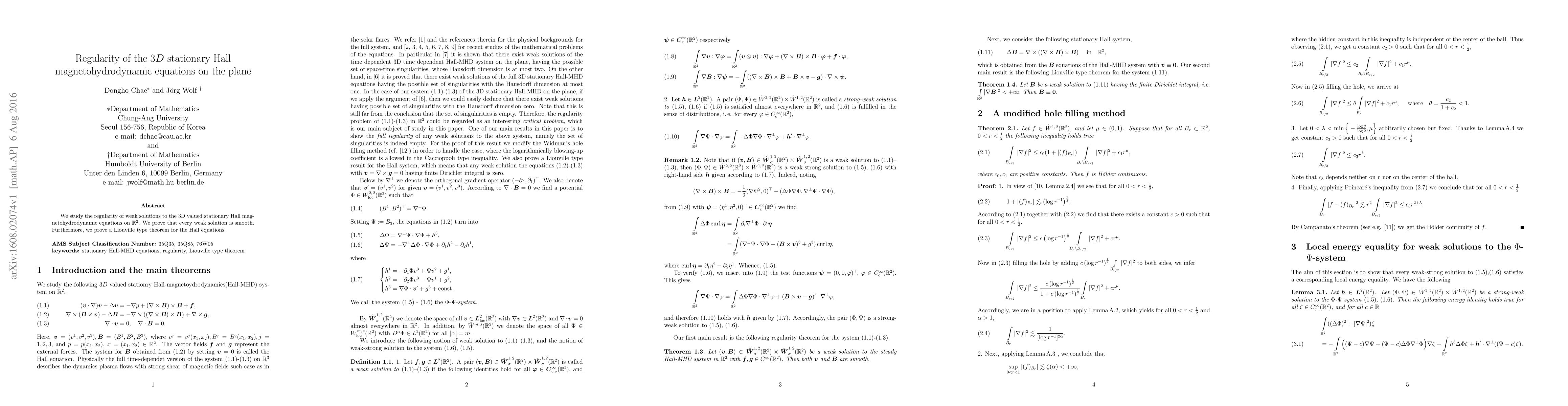 This paper investigates the regularity of weak solutions to the 3D stationary Hall magnetohydrodynamic equations on the plane, proving that all weak solutions are smooth. Additionally, it establishes a Liouville type theorem for the Hall equations.