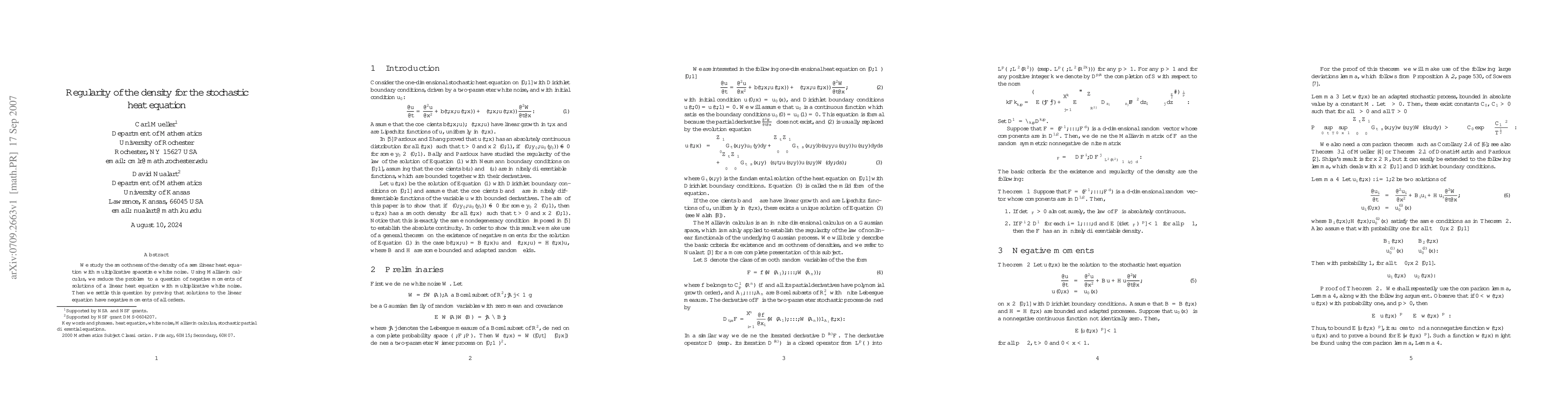 We study the smoothness of the density of a semilinear heat equation with multiplicative spacetime white noise. Using Malliavin calculus, we reduce the problem to a question of negative moments of solutions of a linear heat equation with multiplicative white noise. Then we settle this question by proving that solutions to the linear equation have negative moments of all orders.