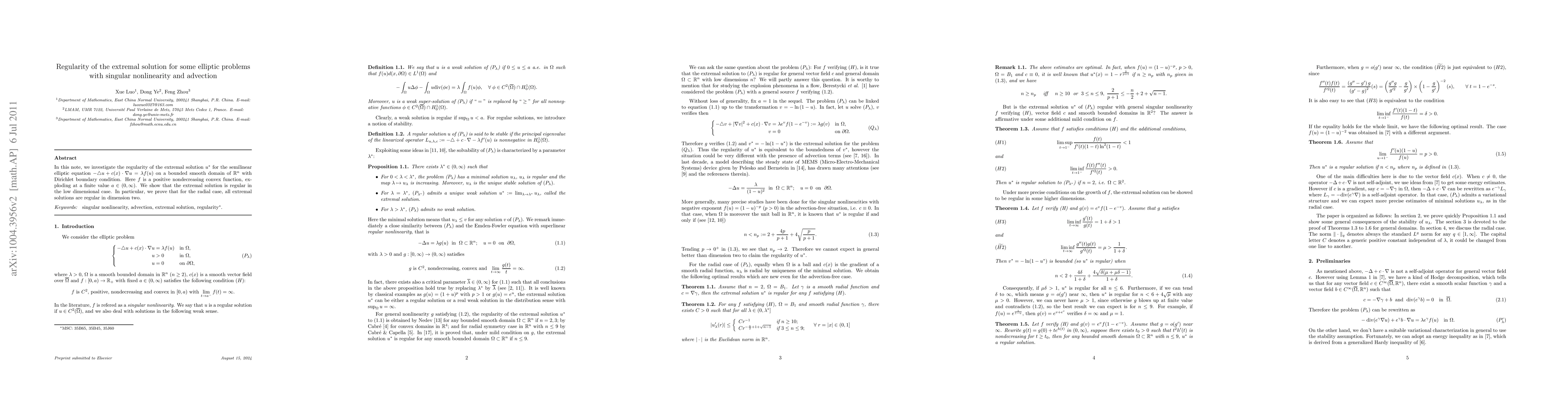 This research proves the regularity of the extremal solution for semilinear elliptic equations with advection in low dimensions, specifically demonstrating that radial solutions are regular in two dimensions.