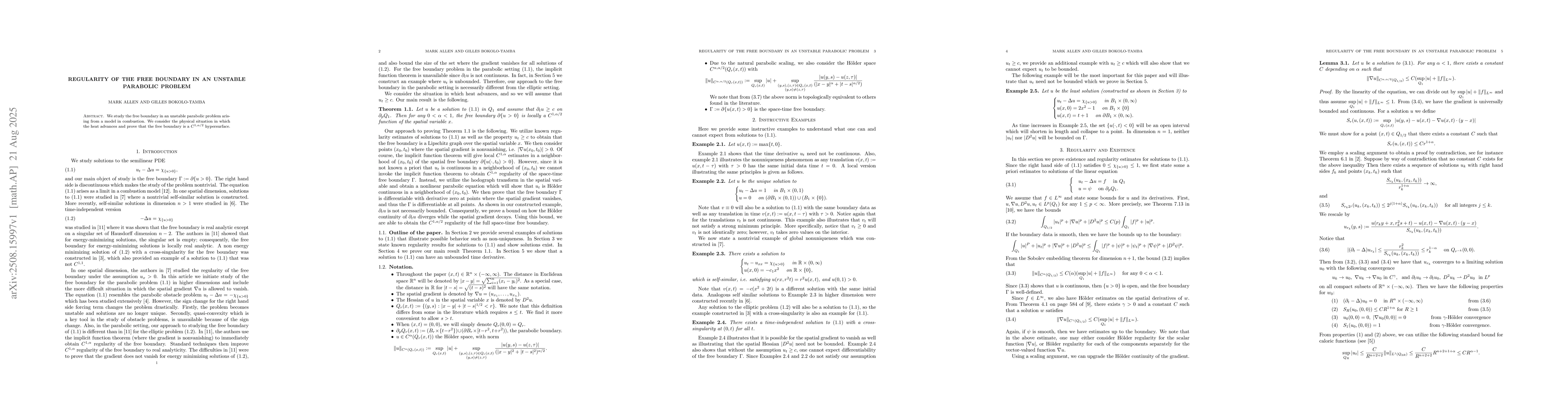 We study the free boundary in an unstable parabolic problem arising from a model in combustion. We consider the physical situation in which the heat advances and prove that the free boundary is a $C^{1,\alpha/2}$ hypersurface.