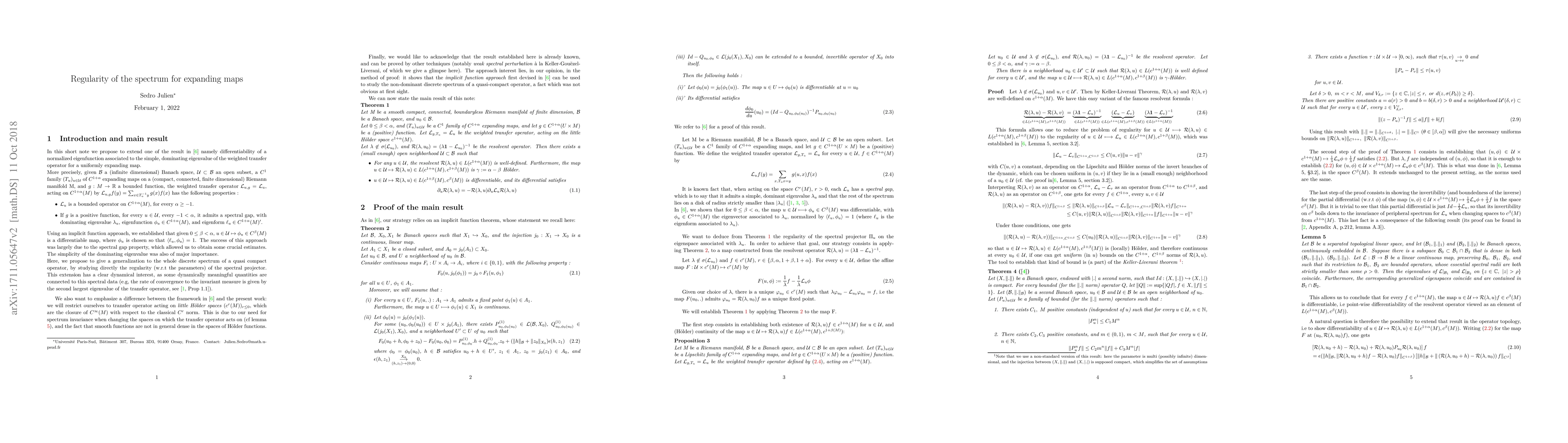 In this short note, we propose to extend differentiability (with respect to a multidimensional parameter) of a normalized eigenfunction associated to the simple, dominating eigenvalue of the weighted transfer operator for a uniformly expanding map, to the whole discrete spectrum. We do so by studying directly the regularity (with respect to the parameter) of the resolvent operator, applying a general regularity result for fixed points of maps having loss of regularity.