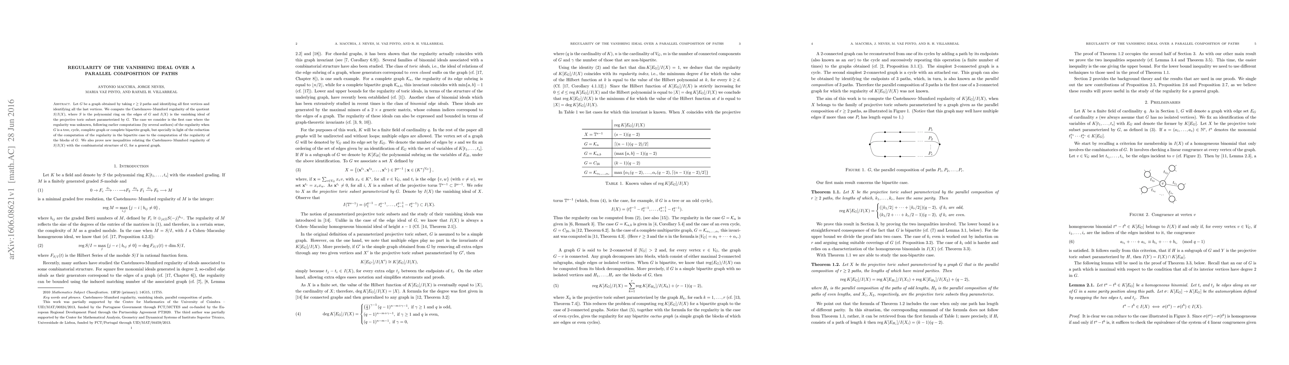 Let G be a graph obtained by taking r>=2 paths and identifying all first vertices and identifying all the last vertices. We compute the Castelnuovo--Mumford regularity of the quotient S/I(X), where S is the polynomial ring on the edges of G and I(X) is the vanishing ideal of the projective toric subset parameterized by G. The case we consider is the first case where the regularity was unknown, following earlier computations (by several authors) of the regularity when G is a tree, cycle, complete graph or complete bipartite graph, but specially in light of the reduction of the computation of the regularity in the bipartite case to the computation of the regularity of the blocks of G. We also prove new inequalities relating the Castelnuovo--Mumford regularity of S/I(X) with the combinatorial structure of G, for a general graph.