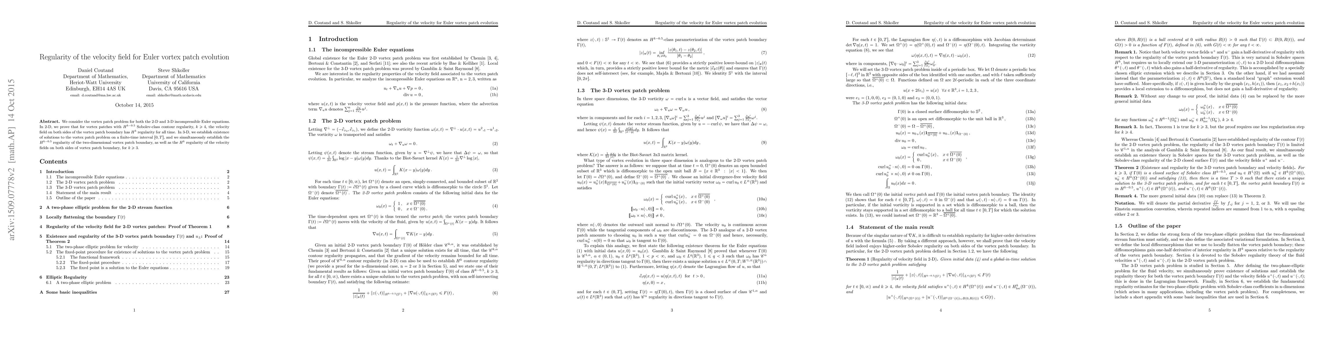 We consider the vortex patch problem for both the 2-D and 3-D incompressible Euler equations. In 2-D, we prove that for vortex patches with $H^{k-0.5}$ Sobolev-class contour regularity, $k \ge 4$, the velocity field on both sides of the vortex patch boundary has $H^k$ regularity for all time. In 3-D, we establish existence of solutions to the vortex patch problem on a finite-time interval $[0,T]$, and we simultaneously establish the $H^{k-0.5}$ regularity of the two-dimensional vortex patch boundary, as well as the $H^k$ regularity of the velocity fields on both sides of vortex patch boundary, for $k \ge 3$.
