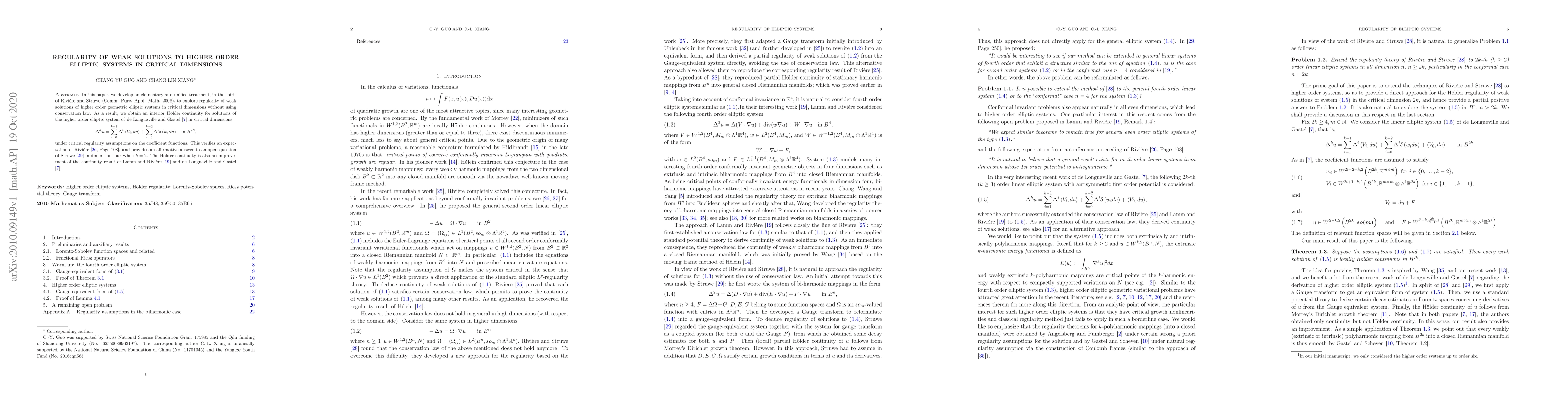In this paper, we develop an elementary and unified treatment, in the spirit of Rivi\`ere and Struwe (Comm. Pure. Appl. Math. 2008), to explore regularity of weak solutions of higher order geometric elliptic systems in critical dimensions without using conservation law. As a result, we obtain an interior H\"older continuity for solutions of the higher order elliptic system of de Longueville and Gastel \cite{deLongueville-Gastel-2019} in critical dimensions $$\Delta^{k}u=\sum_{i=0}^{k-1}\Delta^{i}\left\langle V_{i},du\right\rangle +\sum_{i=0}^{k-2}\Delta^{i}\delta\left(w_{i}du\right) \quad \text{in } B^{2k},$$ under critical regularity assumptions on the coefficient functions. This verifies an expectation of Rivi\`ere, and provides an affirmative answer to an open question of Struwe in dimension four when $k=2$. The H\"older continuity is also an improvement of the continuity result of Lamm and Rivi\`ere and de Longueville and Gastel.