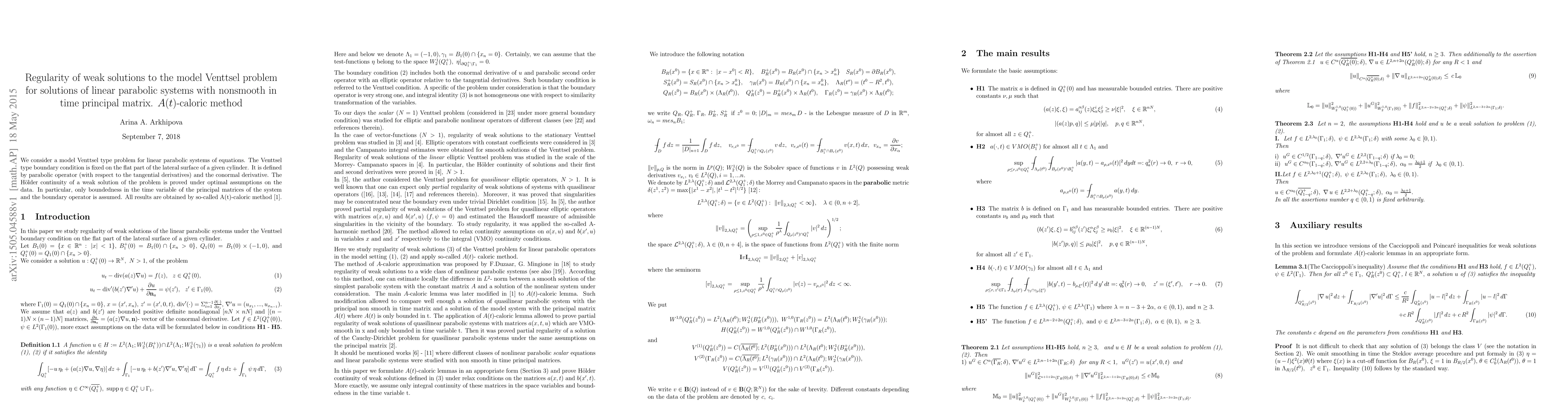 We consider a model Venttsel type problem for linear parabolic systems of equations. The Venttsel type boundary condition is fixed on the flat part of the lateral surface of a given cylinder. It is defined by parabolic operator (with respect to the tangential derivatives) and the conormal derivative. The H\"{o}lder continuity of a weak solution of the problem is proved under optimal assumptions on the data. In particular, only boundedness in the time variable of the principal matrices of the system and the boundary operator is assumed. All results are obtained by so-called A(t)-caloric method.