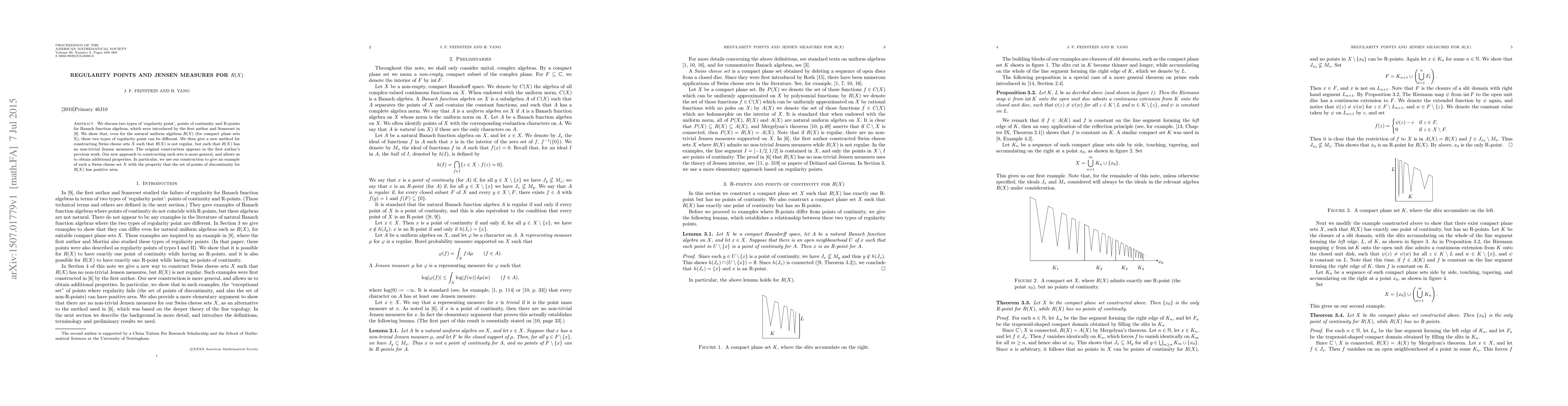 This paper explores different types of regularity points in Banach function algebras, specifically continuity points and R-points, and demonstrates that they can diverge in natural uniform algebras $R(X)$. It introduces a novel method for constructing Swiss cheese sets where $R(X)$ lacks regularity and non-trivial Jensen measures, with the added property that the discontinuity set has positive area.