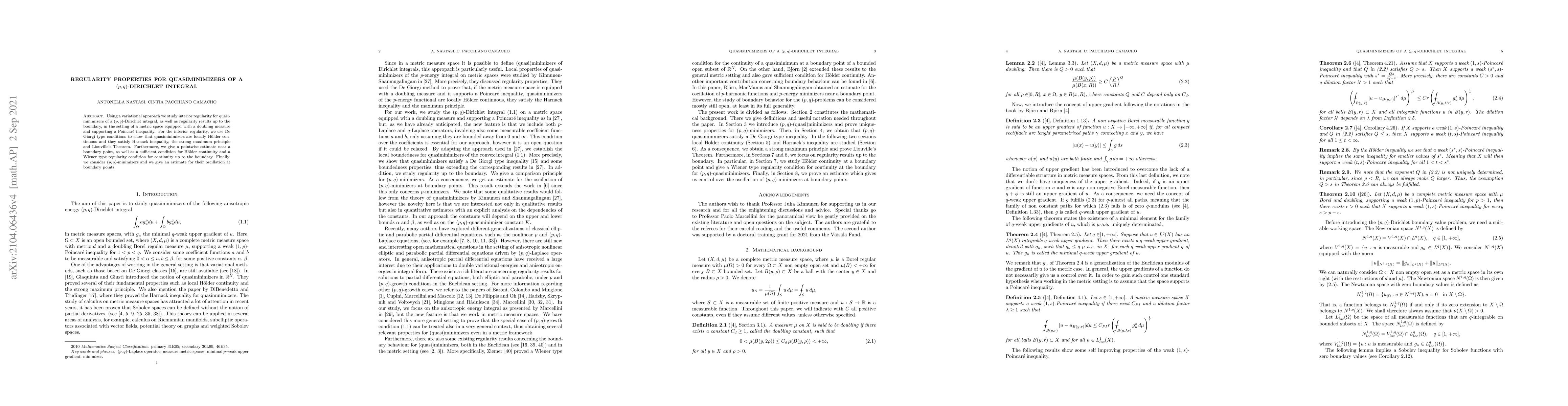 This paper explores the interior and boundary regularity of quasiminimizers for a $(p,q)$-Dirichlet integral in a metric space, proving local H\"older continuity, Harnack inequality, and the strong maximum principle using De Giorgi conditions. It also provides boundary point estimates and regularity conditions for continuity up to the boundary.