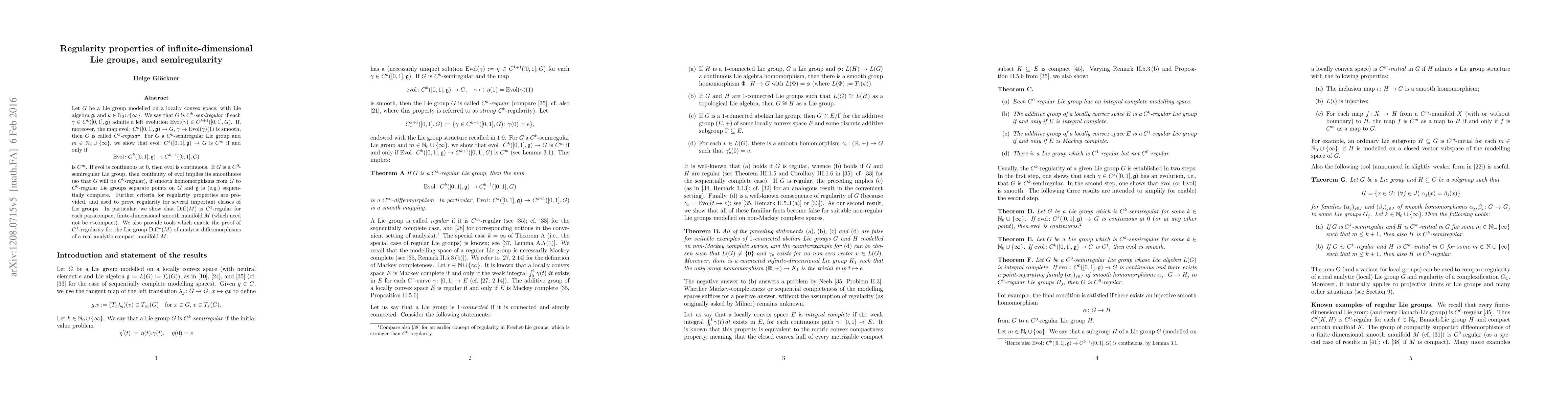 This paper explores the regularity properties of infinite-dimensional Lie groups, establishing criteria for semiregularity and regularity. It proves that for C^k-semiregular Lie groups, the continuity of the evolution map implies its smoothness, leading to C^0-regularity under certain conditions. The study also demonstrates regularity for important classes of Lie groups, including Diff(M) and the Lie group of analytic diffeomorphisms.