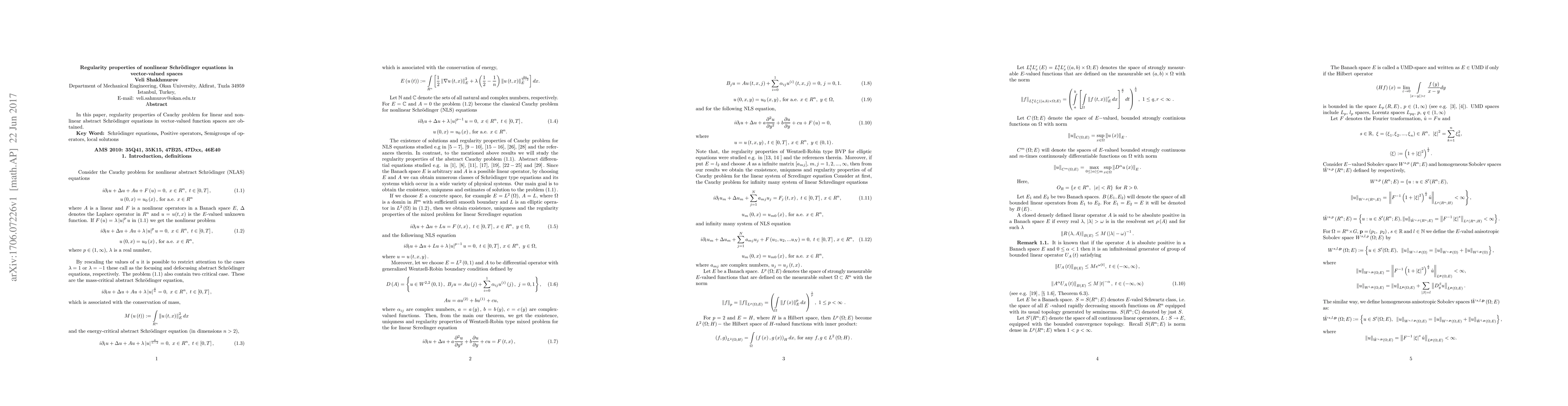 Summary: This paper investigates the regularity properties of the Cauchy problem for both linear and nonlinear abstract Schrödinger equations within the framework of vector-valued function spaces. The study establishes conditions under which solutions exhibit regularity.