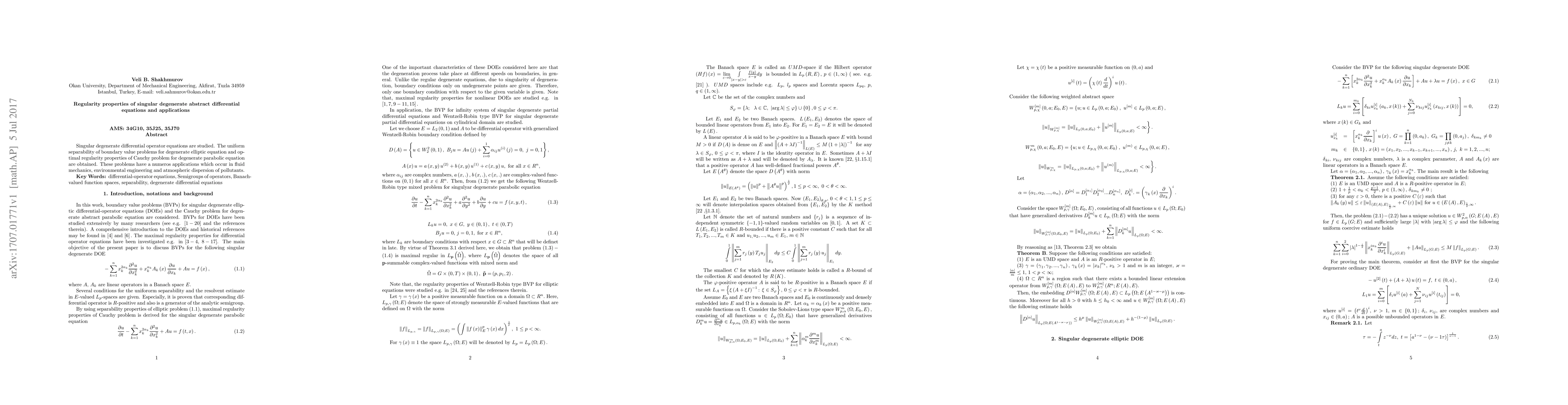 This paper investigates the regularity properties of singular degenerate abstract differential equations, establishing uniform separability and optimal regularity for boundary value problems and Cauchy problems. Applications span fluid mechanics, environmental engineering, and atmospheric pollutant dispersion.