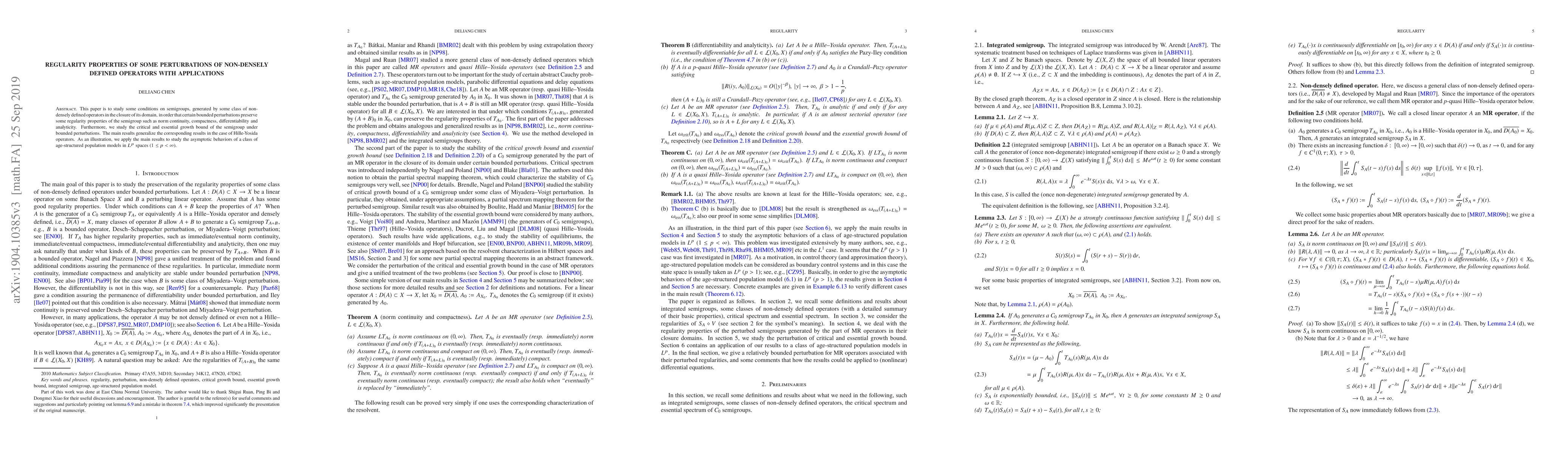 This paper is to study some conditions on semigroups, generated by some class of non-densely defined operators in the closure of its domain, in order that certain bounded perturbations preserve some regularity properties of the semigroup such as norm continuity, compactness, differentiability and analyticity. Furthermore, we study the critical and essential growth bound of the semigroup under bounded perturbations. The main results generalize the corresponding results in the case of Hille-Yosida operators. As an illustration, we apply the main results to study the asymptotic behaviors of a class of age-structured population models in $ L^p $ spaces ($ 1 \leq p < \infty $).