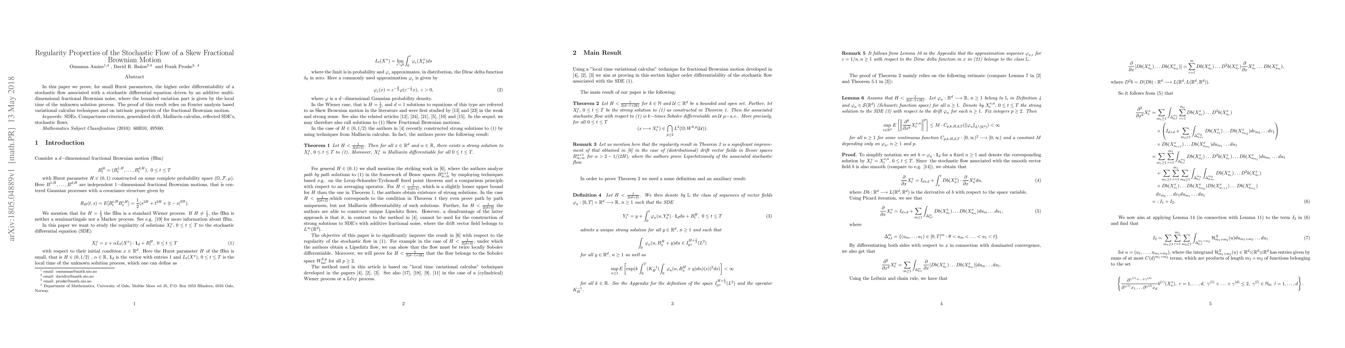This paper demonstrates the higher order differentiability of a stochastic flow linked to a differential equation driven by skew fractional Brownian motion, using Fourier analysis and intrinsic properties of fractional Brownian motion for small Hurst parameters. The bounded variation component is derived from the local time of the solution process.