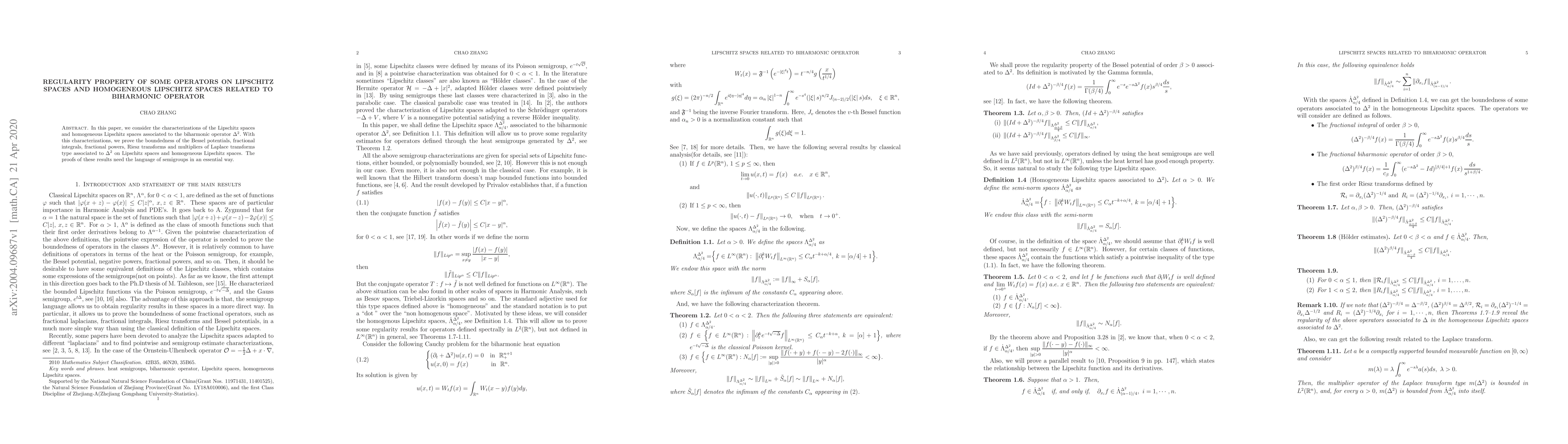 This paper characterizes Lipschitz spaces and homogeneous Lipschitz spaces related to the biharmonic operator $\Delta^2$. It proves the boundedness of various operators on these spaces, utilizing semigroup theory for essential proofs.
