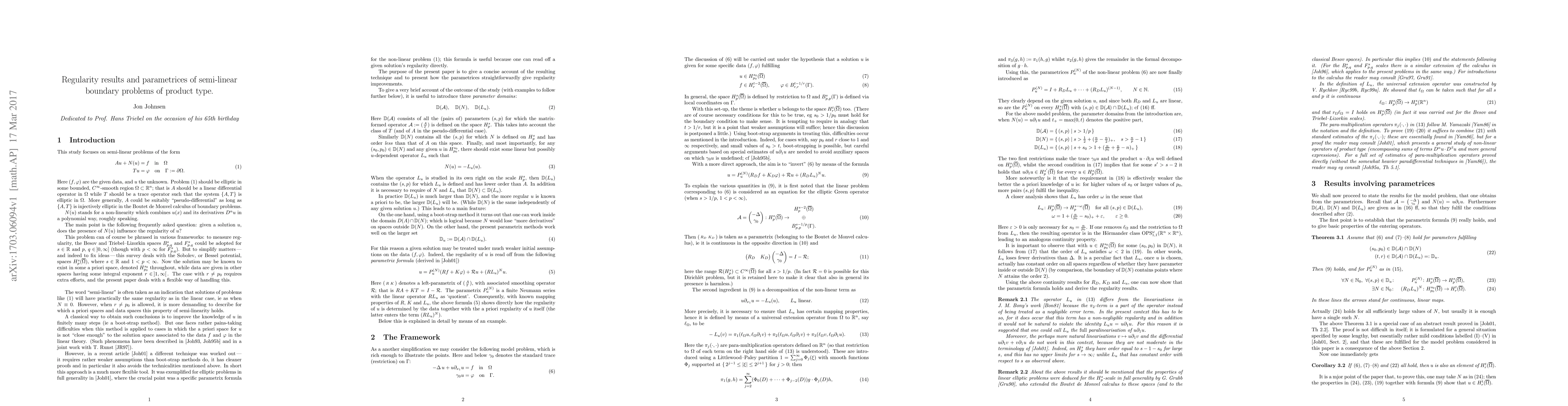 This short note describes the benefit one obtains from a specific construction of a family of parametrices for a class of elliptic boundary value problems perturbed by non-linear terms of product type. The construction is based on the Boutet de Monvel calculus of pseudo-differential boundary operators for the linear elliptic parts, and on paradifferential operators for the product terms.