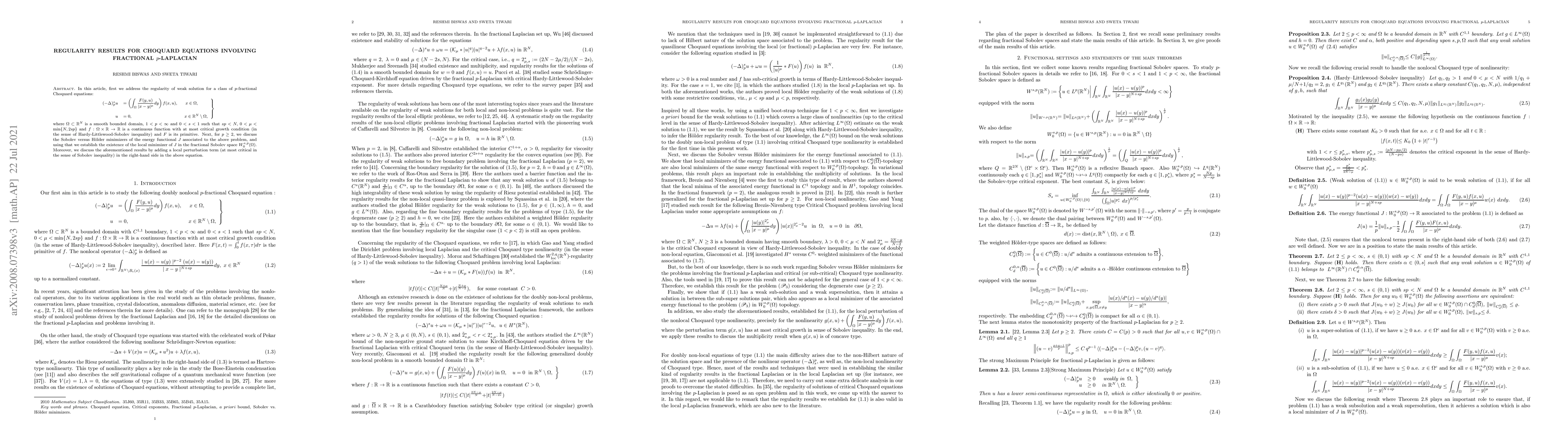 This paper investigates the regularity of weak solutions for Choquard equations involving fractional p-Laplacian, establishing existence of local minimizers in a specific Sobolev space.