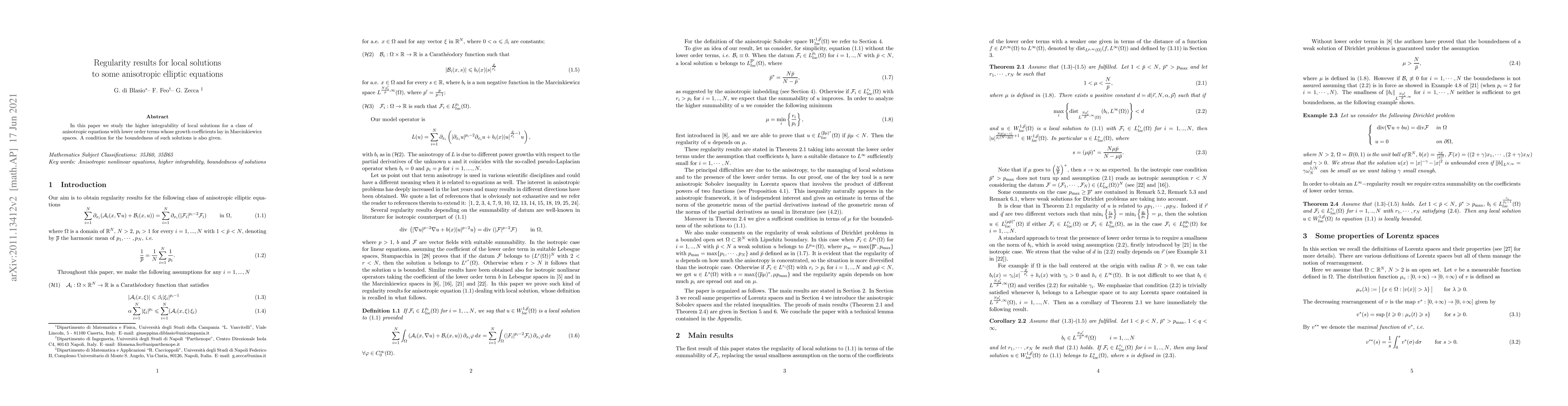 In this paper we study a class of anisotropic equations with a lower order term whose coefficients lay in Marcinkiewicz spaces. We prove some regularity results for local solutions requiring any control on the norm of the coefficients.