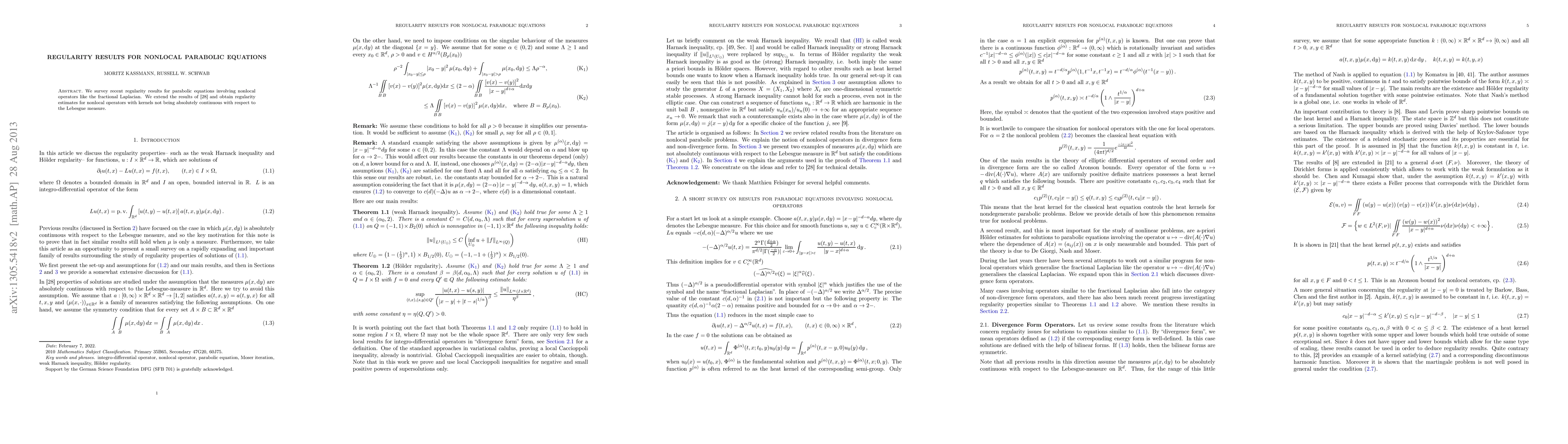 Summary: This paper surveys recent advancements in the regularity of nonlocal parabolic equations, extending prior work to include nonlocal operators with non-absolutely continuous kernels, thus broadening the scope of applicable regularity estimates.