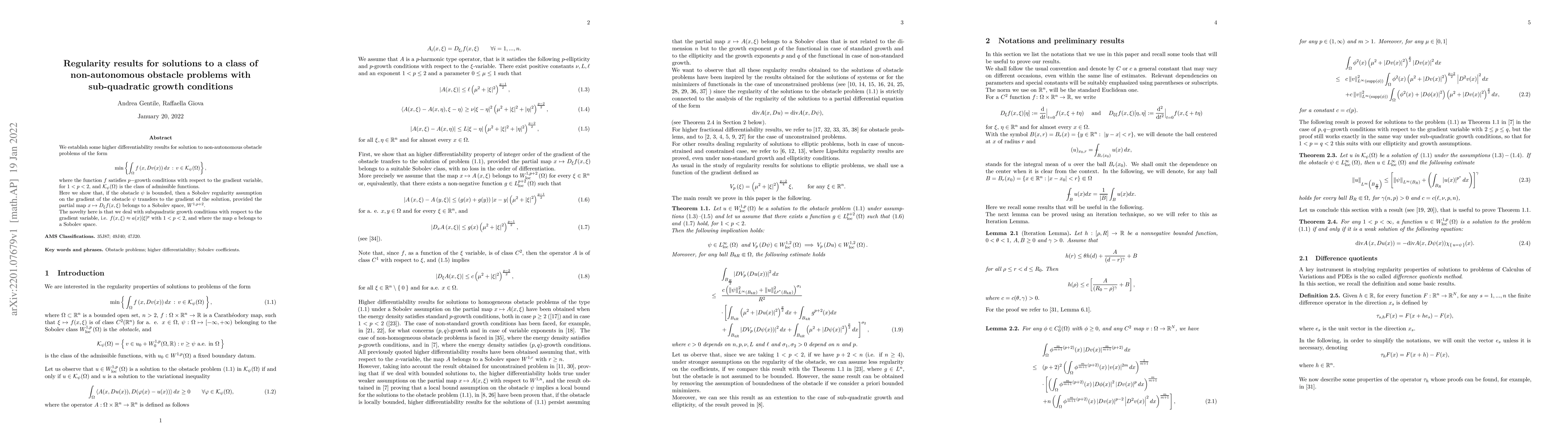 This paper establishes higher differentiability results for solutions to non-autonomous obstacle problems under subquadratic growth conditions. It shows that bounded obstacles lead to Sobolev regularity of the solution's gradient, provided that the partial derivative of the function $f$ belongs to a Sobolev space.