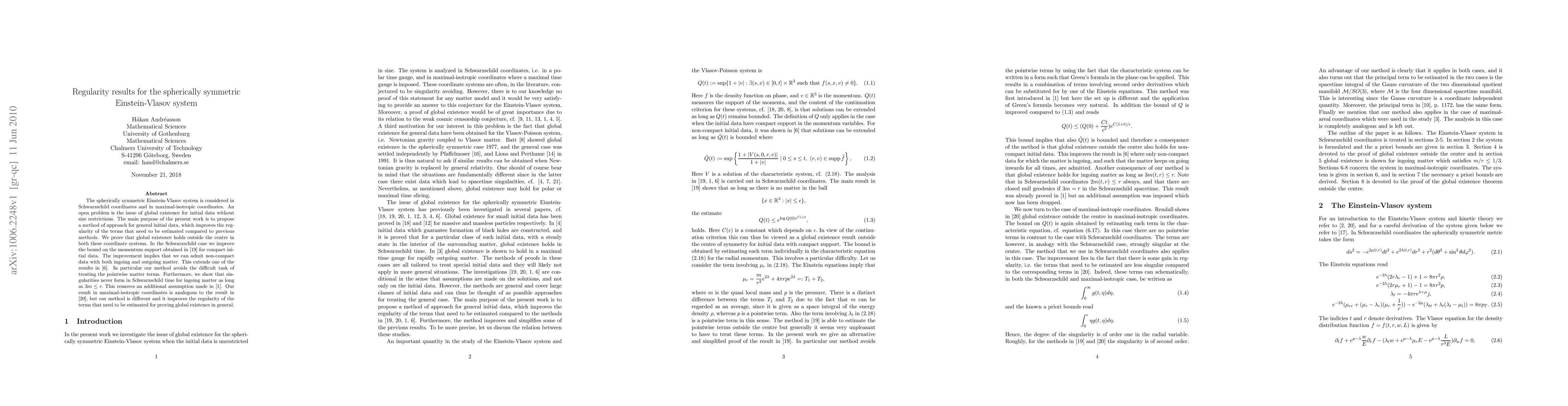 This paper proposes a new method to improve the regularity of terms in the spherically symmetric Einstein-Vlasov system, proving global existence outside the center in both Schwarzschild and maximal-isotropic coordinates. The method allows for non-compact initial data and avoids treating pointwise matter terms, extending previous results.