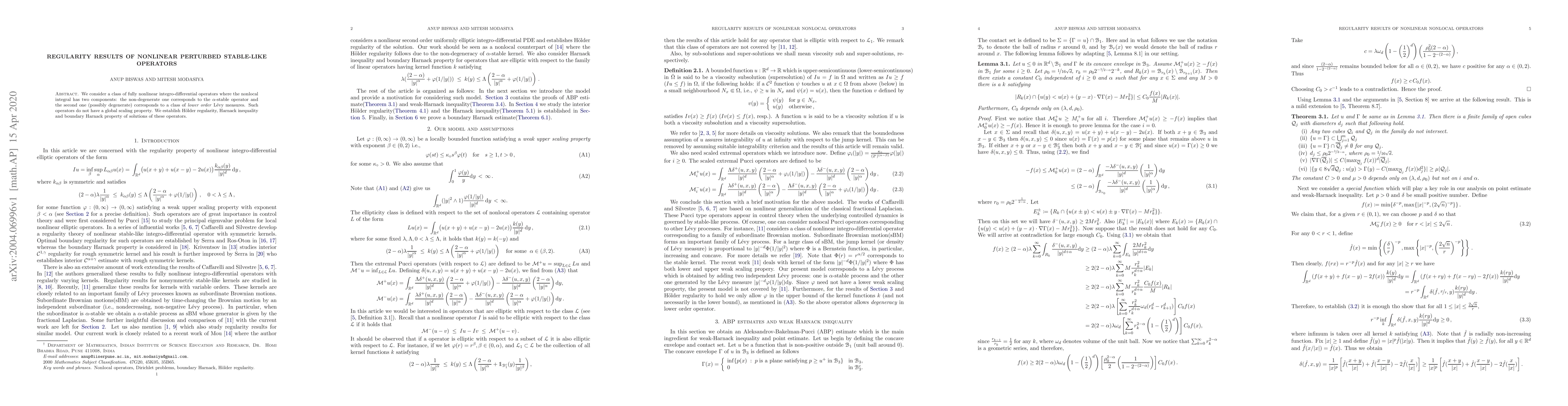 Researchers study a class of nonlinear operators with nonlocal integrals and establish Holder regularity and Harnack inequality for their solutions, showing improved understanding of stable-like operators.