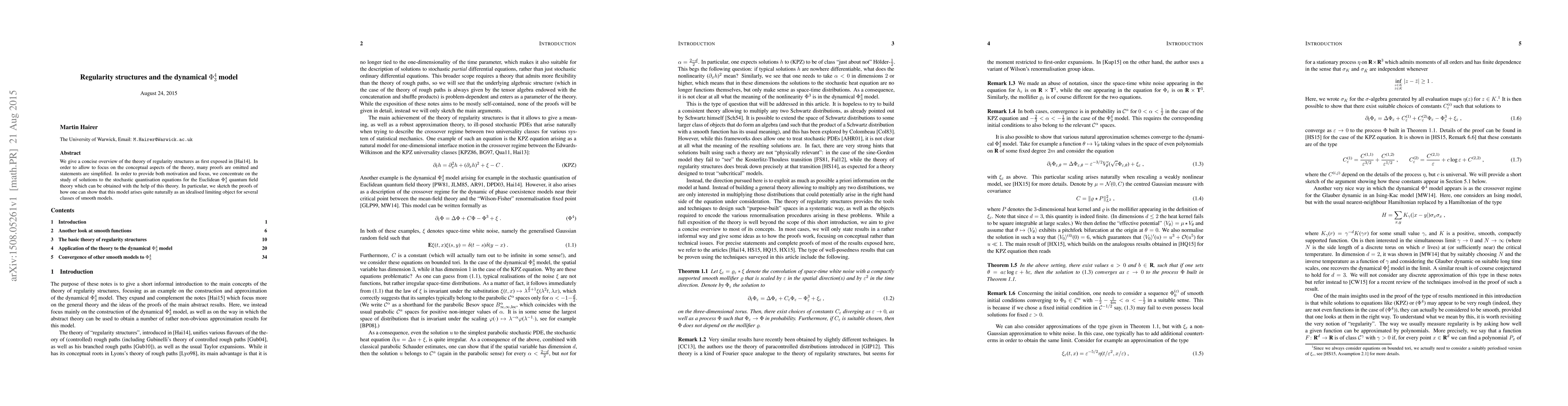 The paper explores regularity structures to study the dynamical Phi^4_3 model, a quantum field theory that arises as an idealized limiting object for smooth models. It provides key insights into the conceptual aspects of regularity structures and their applications in understanding this model.