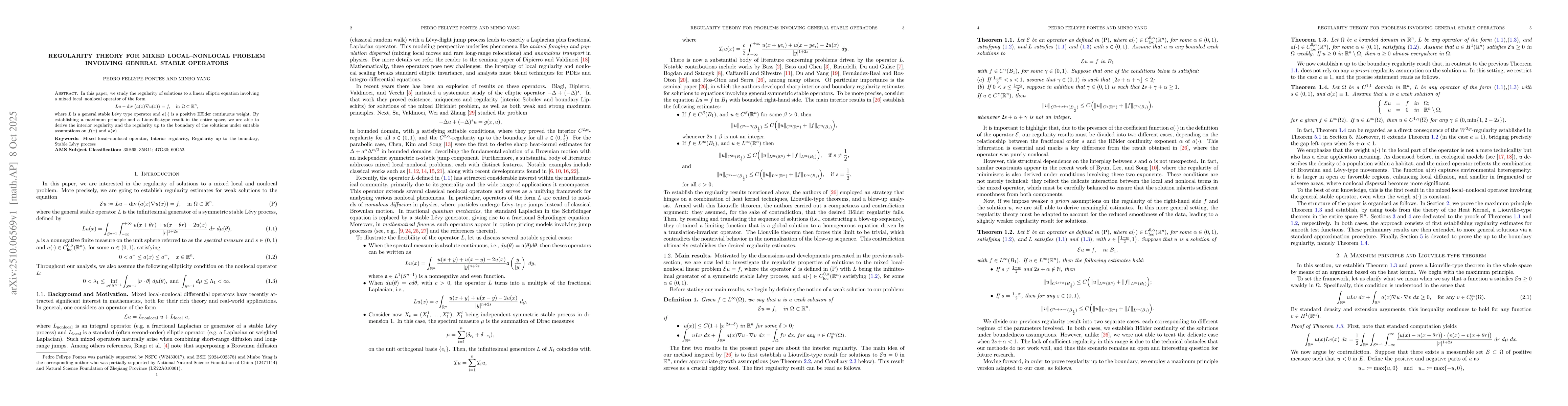 Developed a unified framework for analyzing mixed local and nonlocal elliptic operators, providing new regularity estimates and maximum principles that apply across different parameter ranges.