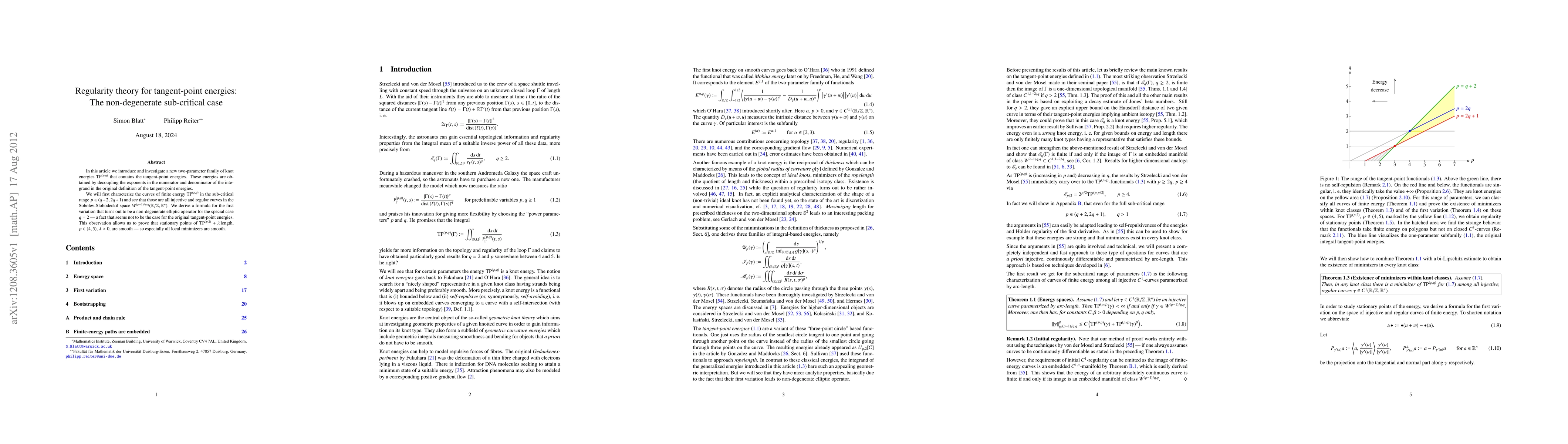 Researchers introduce a new family of knot energies called tangent-point energies with two parameters, characterized as injective and regular curves in a specific Sobolev-Slobodecki space for the sub-critical range, proving smoothness of local minimizers.