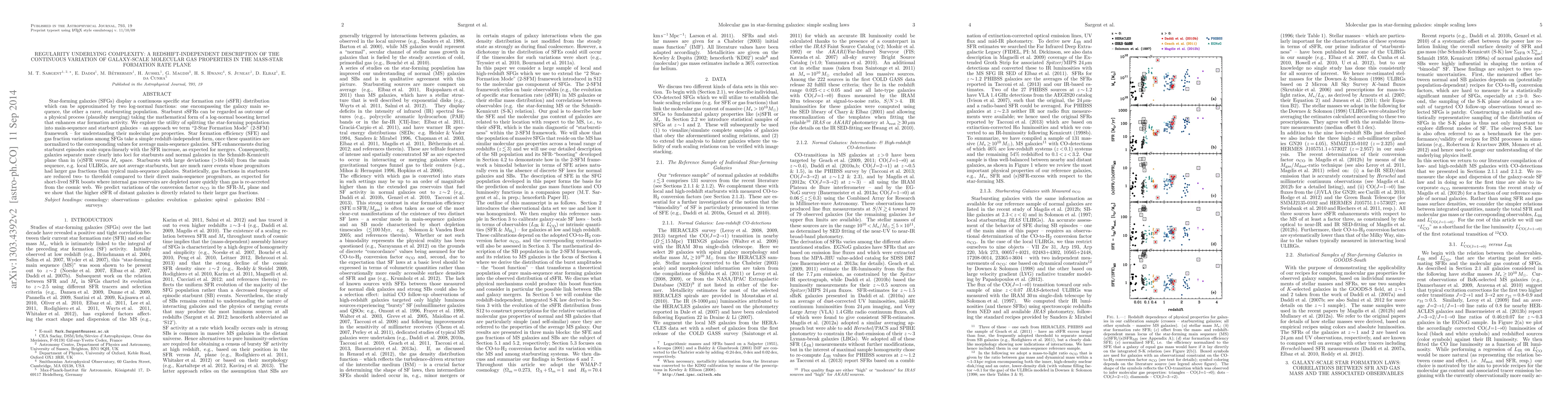 Star-forming galaxies (SFGs) display a continuous distribution of specific star formation rates (sSFR) which can be approximated by the superposition of two log-normal distributions. The 1st of these encompasses the main sequence (MS) of SFGs, the 2nd one a rarer population of starbursts (SB). We show that the sSFR-distribution of SBs can be regarded as the result of a physical process (plausibly merging) taking the mathematical form of a log-normal boosting kernel and enhancing star formation activity. We explore the utility of splitting the star-forming population into MS and SB galaxies - an approach we term "2-Star Formation Mode" (2-SFM) framework - for understanding their molecular gas properties. Variations of star formation efficiency (SFE) and gas fractions among SFGs take a simple, redshift-independent form, once these quantities are normalized to the value of an average MS galaxy. The change in SFE for galaxies undergoing a starburst event scales supra-linearly with the SFR-increase, as expected for mergers. This implies a continuous distribution of galaxies in the Schmidt-Kennicutt plane that separates more clearly into loci for SBs and normal galaxies than observed in SFR vs. M* space. SBs with the largest deviations (>10-fold) from the MS, like many local ULIRGs, are not average SBs, but even rarer events with progenitors having larger gas fractions than typical MS galaxies. We statistically infer that the gas fractions of typical SBs decrease by a factor of 2 to 3 with respect to their direct MS progenitors, as expected to occur in short-term SFR-boosts during which internal gas reservoirs are drained more quickly than gas is accreted from the cosmic web. We predict variations of the CO-to-H2 conversion factor in the SFR-M* plane and provide evidence that the higher sSFR of distant galaxies is a direct consequence of larger gas fraction in these systems.