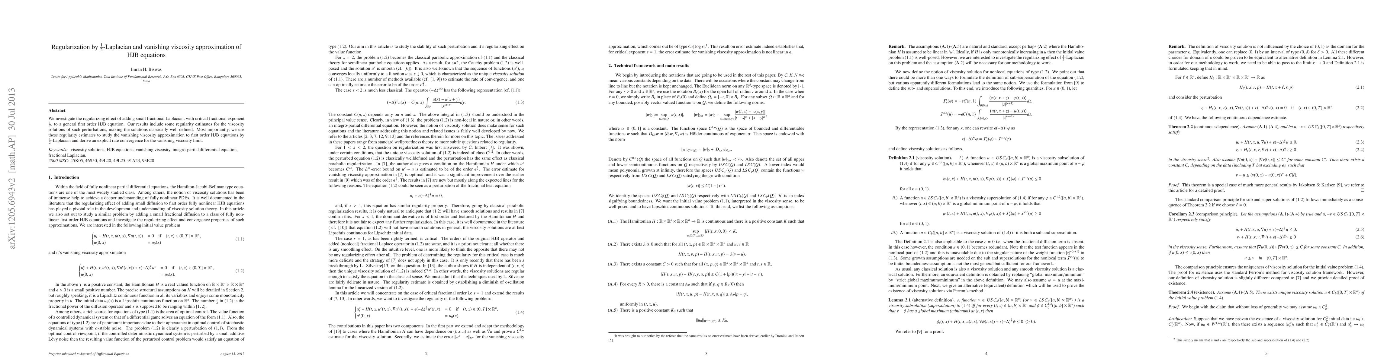 This paper explores the regularization of first-order Hamilton-Jacobi-Bellman (HJB) equations by adding a small fractional Laplacian with a critical exponent of 1/2, achieving well-defined viscosity solutions. It also provides a convergence rate for the vanishing viscosity approximation using the 1/2-Laplacian.