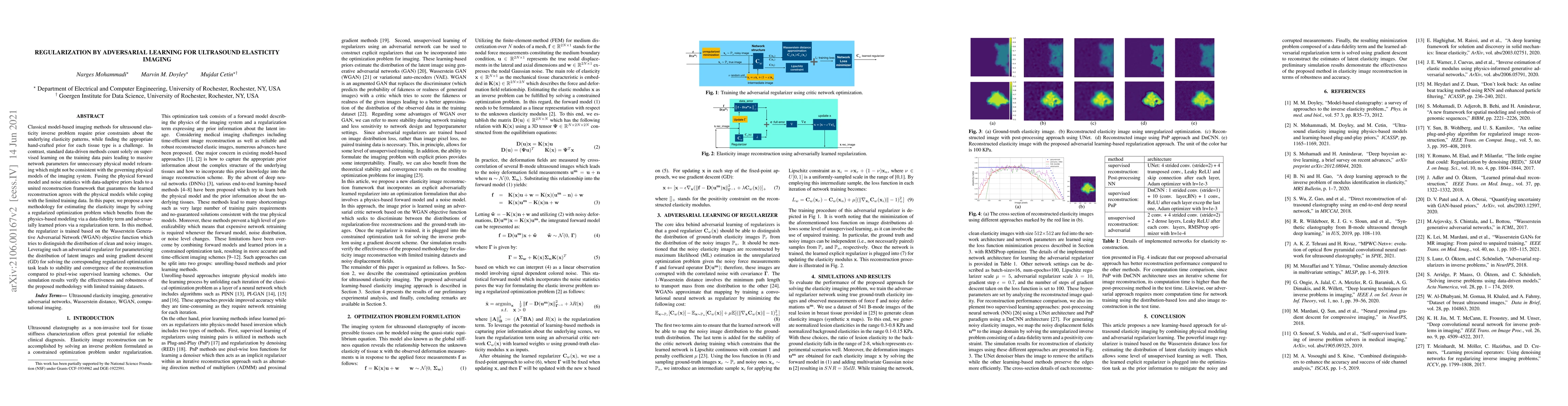 Researchers propose a new method for estimating ultrasound elasticity images using a regularization term inspired by adversarial learning, which improves stability and convergence compared to traditional supervised learning schemes.
