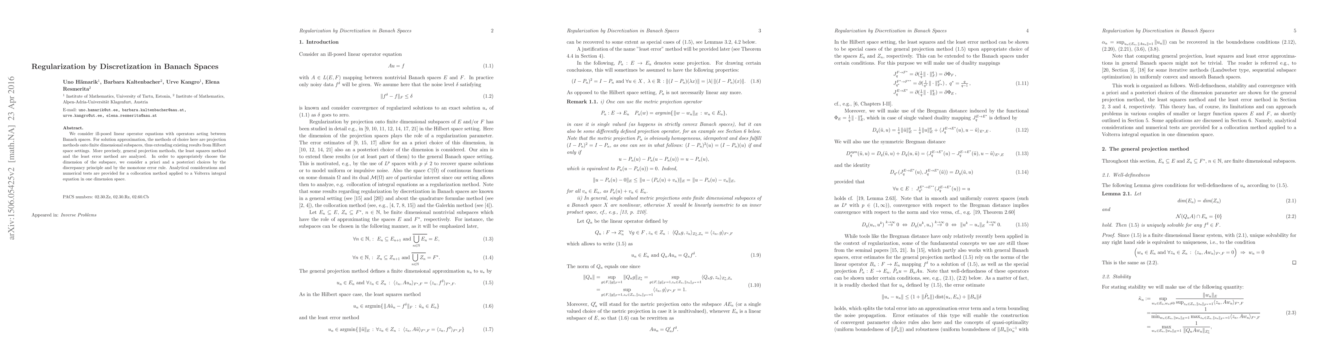 This paper analyzes the effectiveness of discretization methods in Banach spaces for solving ill-posed linear operator equations, exploring a priori and a posteriori choices for subspace dimension selection.
