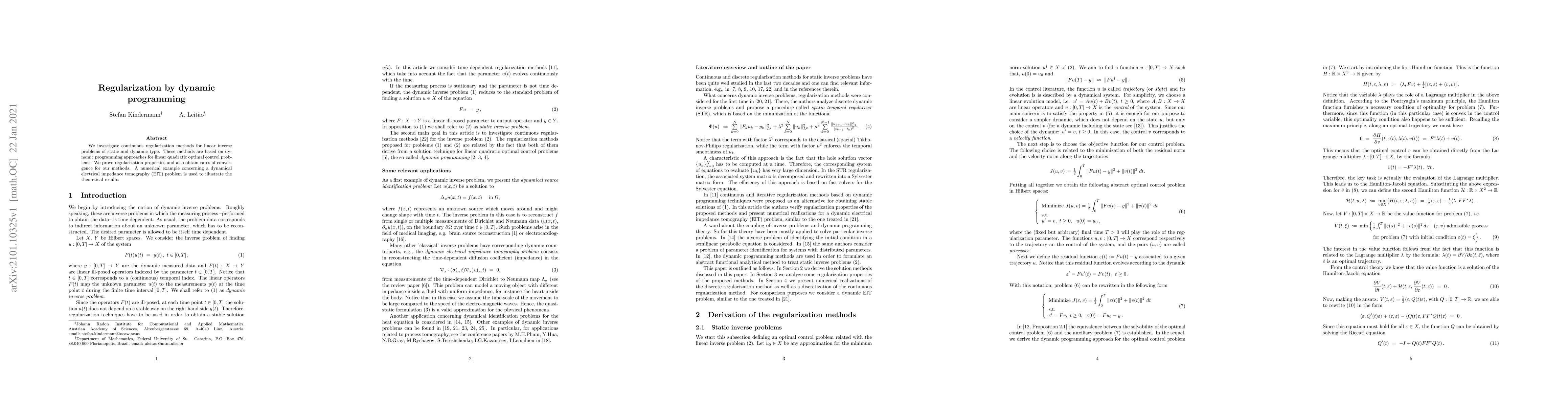 This paper explores continuous regularization techniques for linear inverse problems using dynamic programming, proving their effectiveness and convergence rates. A numerical example from dynamical electrical impedance tomography demonstrates the theoretical findings.