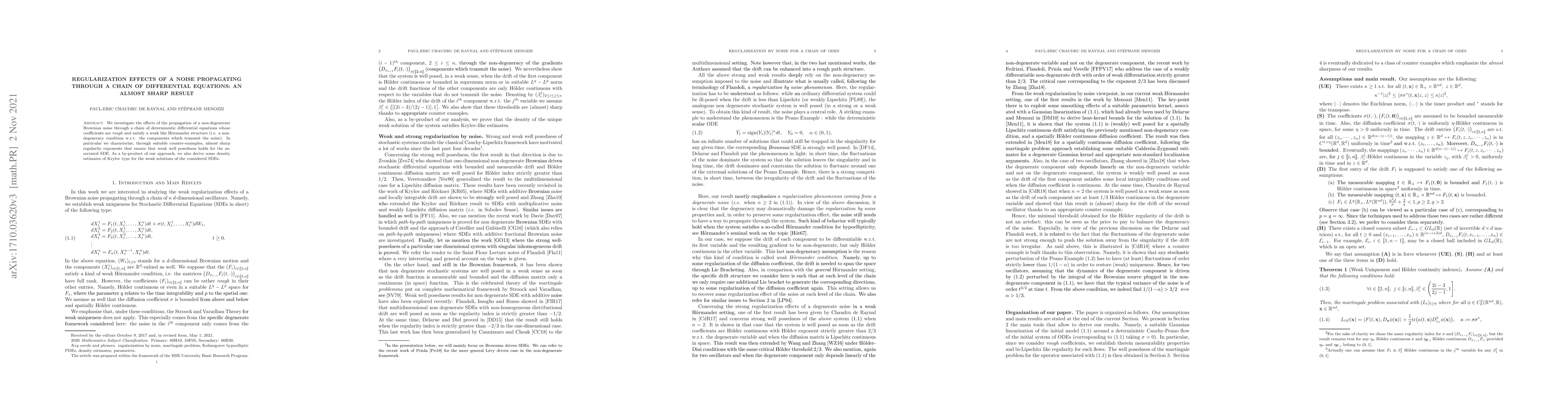 We investigate the effects of the propagation of a non-degenerate Brownian noise through a chain of deterministic differential equations whose coefficients are rough and satisfy a weak like H{\"o}rmander structure (i.e. a non-degeneracy condition w.r.t. the components which transmit the noise). In particular we characterize, through suitable counterexamples , almost sharp regularity exponents that ensure that weak well posedness holds for the associated SDE. As a by-product of our approach, we also derive some density estimates of Krylov type for the weak solutions of the considered SDEs.