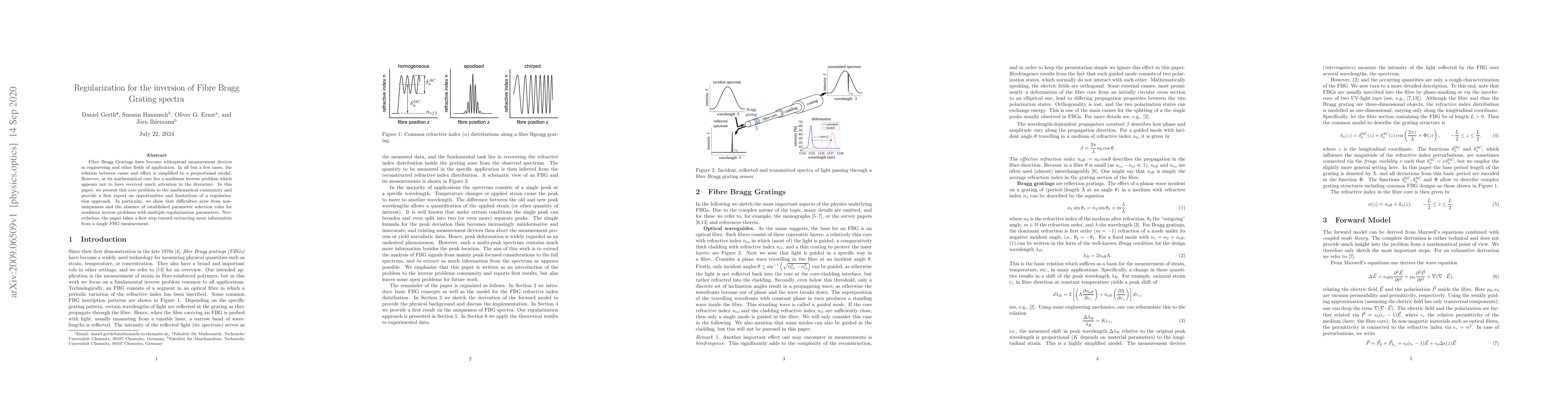 Fibre Bragg Gratings have become widespread measurement devices in engineering and other fields of application. In all but a few cases, the relation between cause and effect is simplified to a proportional model. However, at its mathematical core lies a nonlinear inverse problem which appears not to have received much attention in the literature. In this paper, we present this core problem to the mathematical community and provide a first report on opportunities and limitations of a regularization approach. In particular, we show that difficulties arise from non-uniqueness and the absence of established parameter selection rules for nonlinear inverse problems with multiple regularization parameters. Nevertheless, the paper takes a first step toward extracting more information from a single FBG measurement.