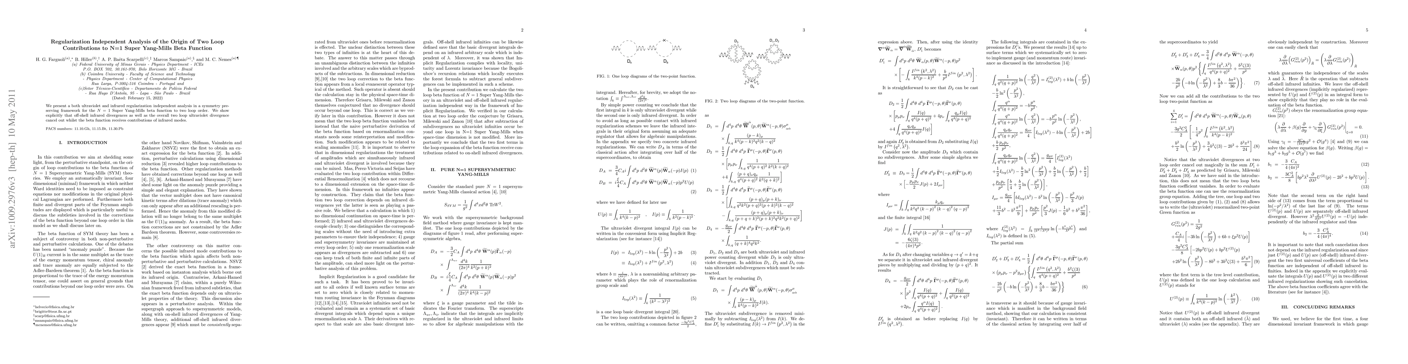 Researchers analyze the N=1 Super Yang-Mills beta function to two loop order, finding that infrared divergences cancel out while providing contributions to the function, leading to a regularization-independent analysis.