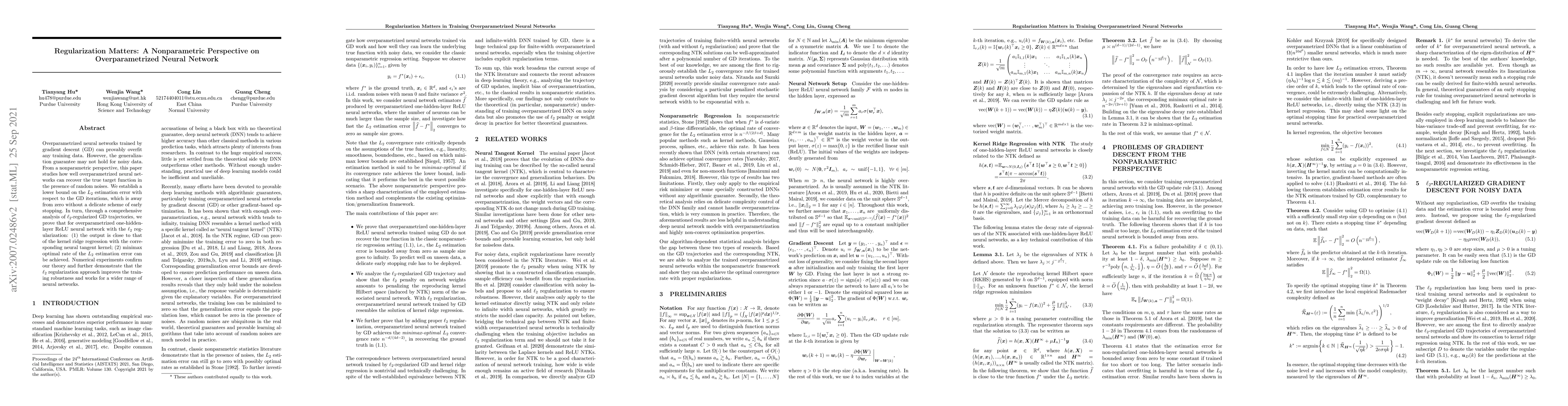 This paper investigates the performance of overparametrized neural networks in recovering true target functions amidst noise, establishing a lower bound on the $L_2$ estimation error. It demonstrates that $\ell_2$-regularized gradient descent can achieve minimax optimal rates and is comparable to kernel ridge regression, enhancing training robustness.