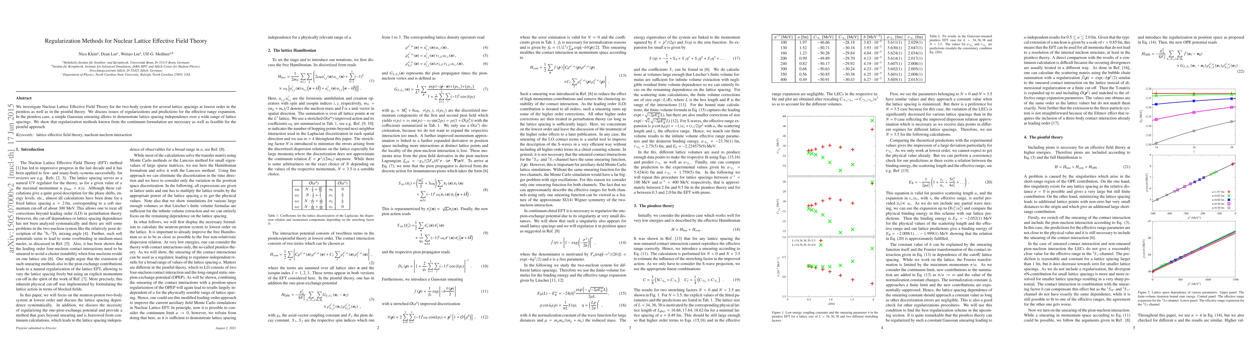 This paper explores Nuclear Lattice Effective Field Theory for two-body systems, comparing regularization methods for both pionless and pionful theories. Gaussian smearing effectively demonstrates lattice spacing independence in the pionless case, while established regularization techniques from the continuum formulation are shown to be applicable in the pionful approach.