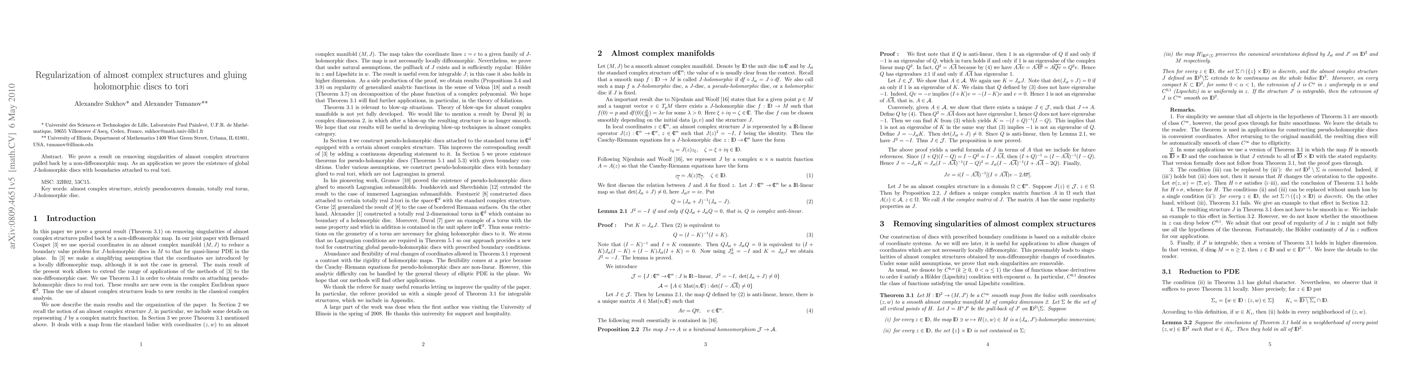 We prove a result on removing singularities of almost complex structures pulled back by a non-diffeomorphic map. As an application we prove the existence of global J-holomorphic discs with boundaries attached to real tori.