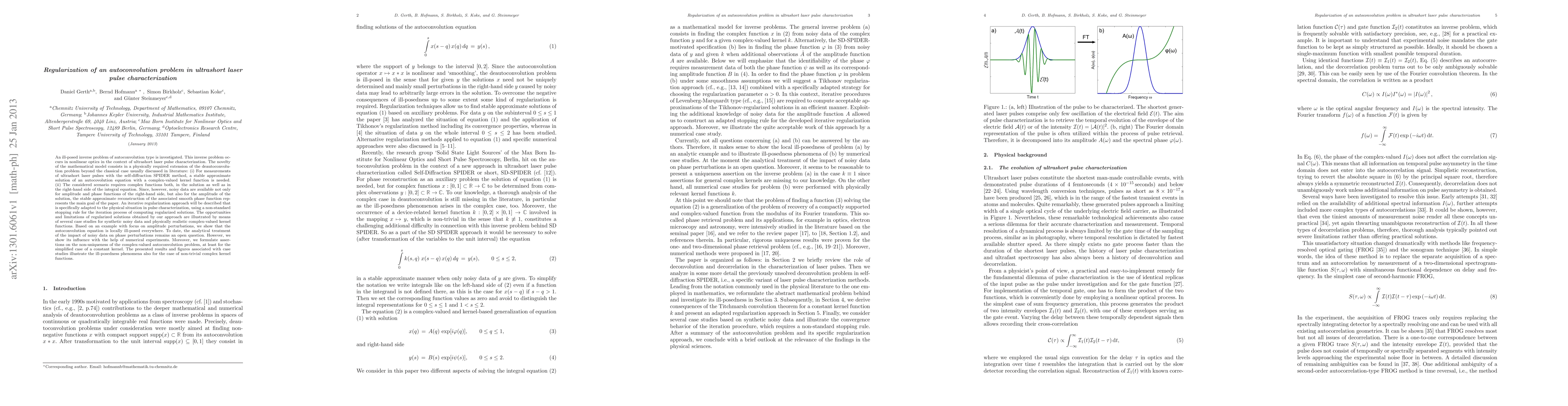 Researchers developed an iterative regularization approach to solve an ill-posed inverse problem in ultrashort laser pulse characterization, highlighting the challenges of noisy data and non-uniqueness in solving complex-valued autoconvolution problems.