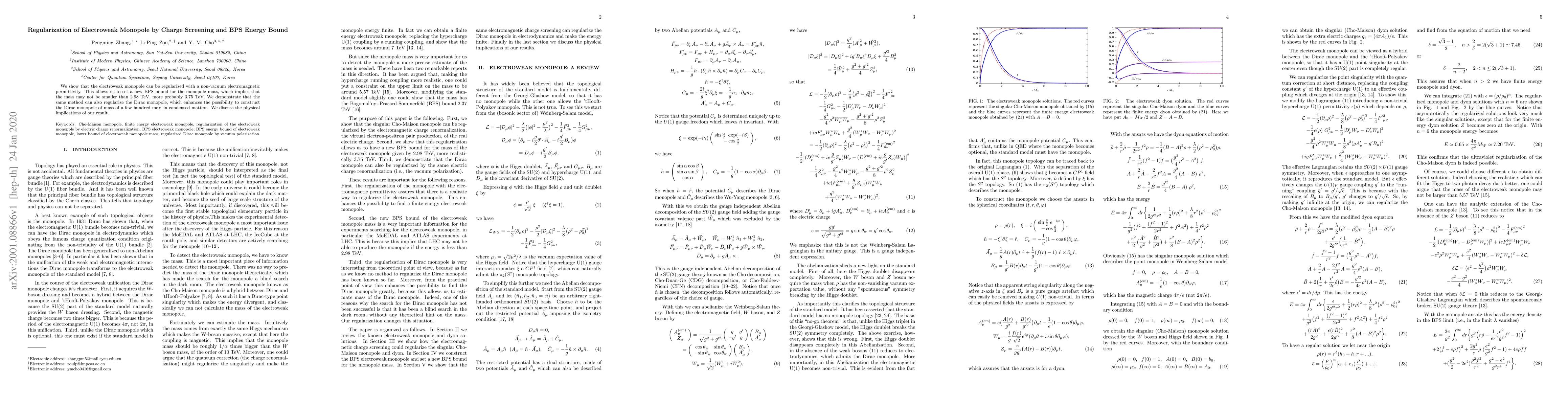 This paper demonstrates that electroweak monopoles can be regularized using non-vacuum electromagnetic permittivity, establishing a new BPS bound that suggests monopole masses are likely above 2.98 TeV, with a more probable value of 3.75 TeV. The method also regularizes Dirac monopoles, potentially enabling the creation of Dirac monopoles in condensed matter systems with masses in the meV range.