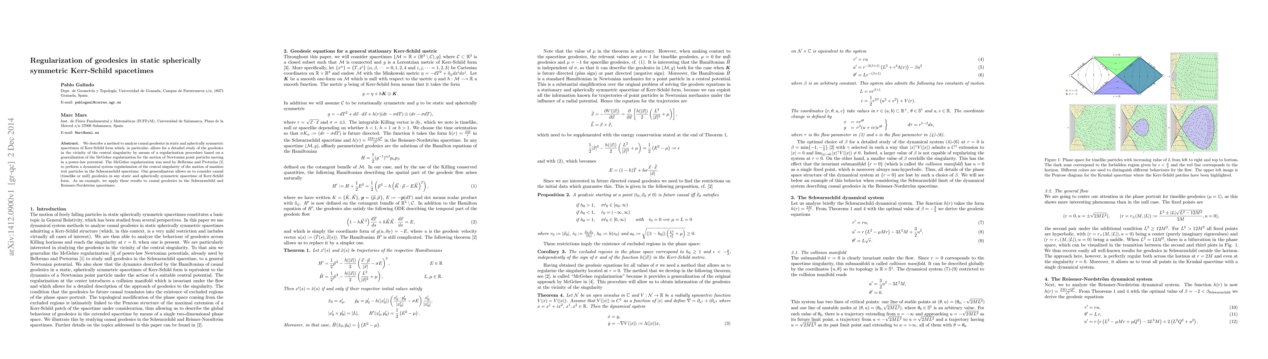 This paper presents a regularization method for analyzing causal geodesics in static spherically symmetric Kerr-Schild spacetimes, extending the McGehee regularization technique to study geodesics near central singularities. The method is demonstrated on Schwarzschild and Reissner-Nordström spacetimes.