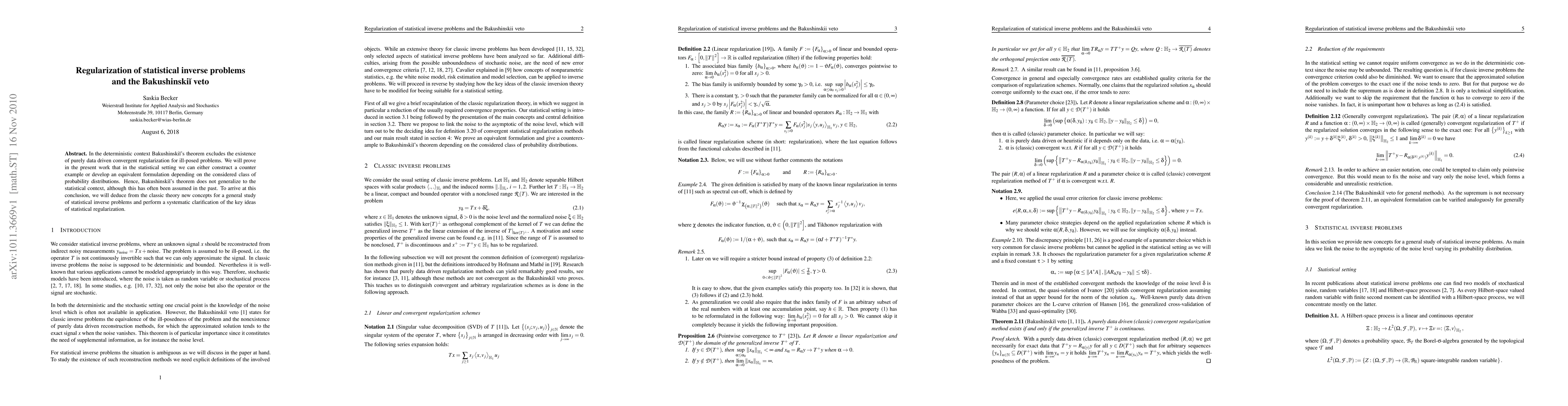 In the deterministic context Bakushinskii's theorem excludes the existence of purely data driven convergent regularization for ill-posed problems. We will prove in the present work that in the statistical setting we can either construct a counter example or develop an equivalent formulation depending on the considered class of probability distributions. Hence, Bakushinskii's theorem does not generalize to the statistical context, although this has often been assumed in the past. To arrive at this conclusion, we will deduce from the classic theory new concepts for a general study of statistical inverse problems and perform a systematic clarification of the key ideas of statistical regularization.
