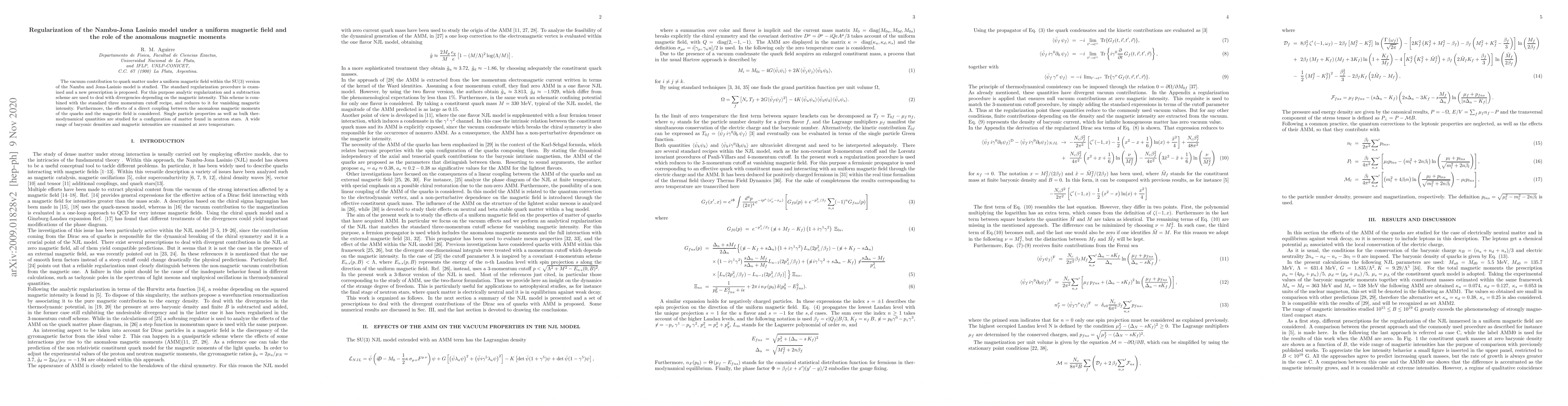 The vacuum contribution to quark matter under a uniform magnetic field within the SU(3) version of the Nambu and Jona-Lasinio model is studied. The standard regularization procedure is examined and a new prescription is proposed. For this purpose analytic regularization and a subtraction scheme are used to deal with divergencies depending on the magnetic intensity. This scheme is combined with the standard three momentum cutoff recipe, and reduces to it for vanishing magnetic intensity. Furthermore, the effects of a direct coupling between the anomalous magnetic moments of the quarks and the magnetic field is considered. Single particle properties as well as bulk thermodynamical quantities are studied for a configuration of matter found in neutron stars. A wide range of baryonic densities and magnetic intensities are examined at zero temperature.
